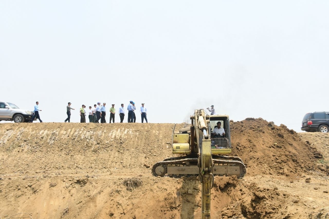 ထို့နောက် ပဲခူးတိုင်းဒေသကြီးဝန်ကြီးချုပ်နှင့် အစိုးရအဖွဲ့ဝင်ဝန်ကြီးများတို့သည် ပဲခူးမြို့နယ်၊ ပဲခူးမြစ်တာ၊ တာမိုင်(၄/၀)မှ(၅/၀)အတွင်း (အောက်စီတီး-အရှေ့ကျေးရွာ) တာပုံစံကျပြုပြင်ခြင်းလုပ်ငန်း ဆောင်ရွက်နေမှုအား ကွင်းဆင်းကြည့်ရှုခဲ့ပြီး ပဲခူးမြို့နယ်အတွင်းရှိ ပဲခူးမြစ်တာများသည် ရေကြီးရေလျှံမှုကို ကာကွယ်သည့်အပြင် ကျေးရွာချင်းဆက်လမ်းအဖြစ်လည်း အသုံးပြုနေသည့်တာများဖြစ်၍ တာများ၏ ကြံ့ခိုင်မှုကိုစဉ်ဆက်မပြတ် စစ်ဆေးရန်၊ တာဘောင်တစ်လျှောက် ကျူးကျော်လူထိုင်မှုမရှိစေရေးနှင့် သတ်မှတ်ထားသည့်လမ်းများကိုသာ တာဘောင်နှင့် ချိတ်ဆက်အသုံးပြုသွားရန် တာဝန်ရှိသူများအား လမ်းညွှန်မှာကြားခဲ့ကြောင်း သိရသည်။