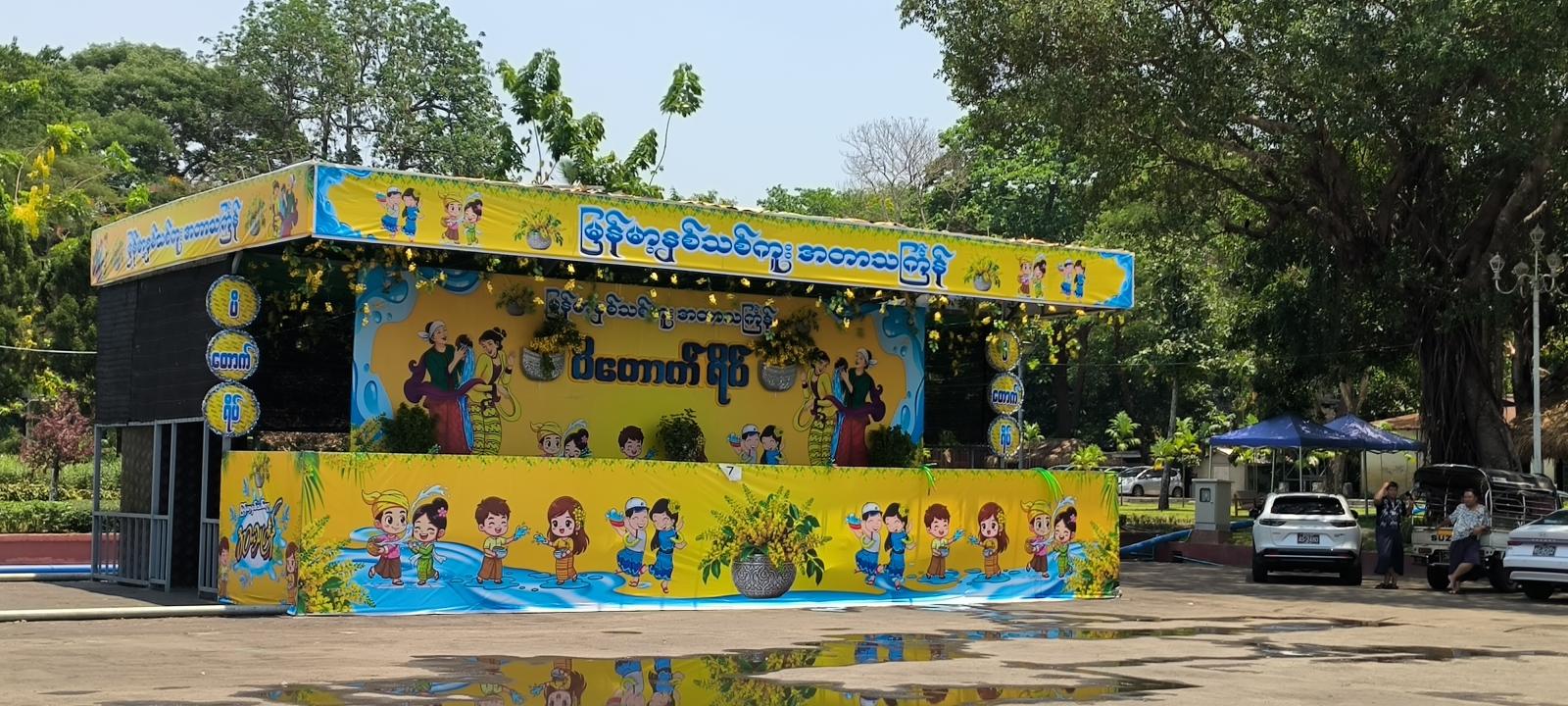 ရန်ကုန်တိုင်းဒေသကြီး၊ ဒဂုံမြို့နယ်၊ ပြည်သူ့ရင်ပြင်တွင် ဧပြီ ၁၃ ရက်တွင် စတင်ကျင်းပမည့် မြန်မာ့ရိုးရာနှစ်သစ်ကူး အတာသင်္ကြန်ပွဲတော်အတွက် ရေကစားမဏ္ဍပ်၊ လမ်းလျှောက်သင်္ကြန် မဏ္ဍပ်နှင့် စတုဒိသာမဏ္ဍပ်များ ဆောက်လုပ်ထားရှိပြီးဖြစ်ကြောင်း သိရှိရသည်။