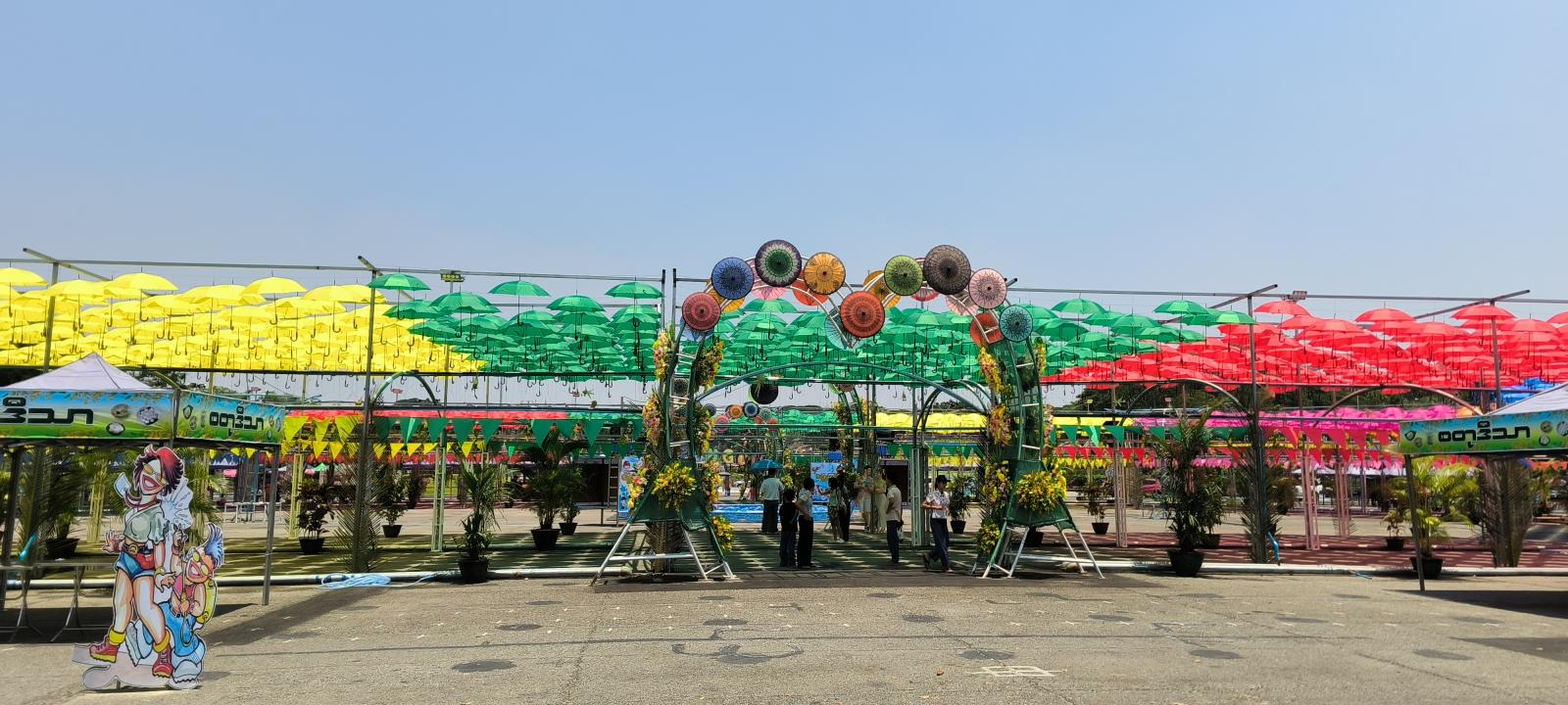 ပြည်သူများ ပျော်ရွှင်စွာ ပါဝင်ဆင်နွှဲနိုင်ရန်နှင့် နေအပူရှိန်သက်သာစေရန် လမ်းလျှောက် သင်္ကြန်မဏ္ဍပ်တွင် ထီးအမိုးများဖြင့် စနစ်တကျပြင်ဆင်ထားရှိလျက်ရှိပြီး လုံခြုံရေးနှင့် ကျန်းမာရေးစောင့်ရှောက်မှုများလည်း ဆောင်ရွက်ပေးမည်ဖြစ်ကြောင်းသိရသည်။