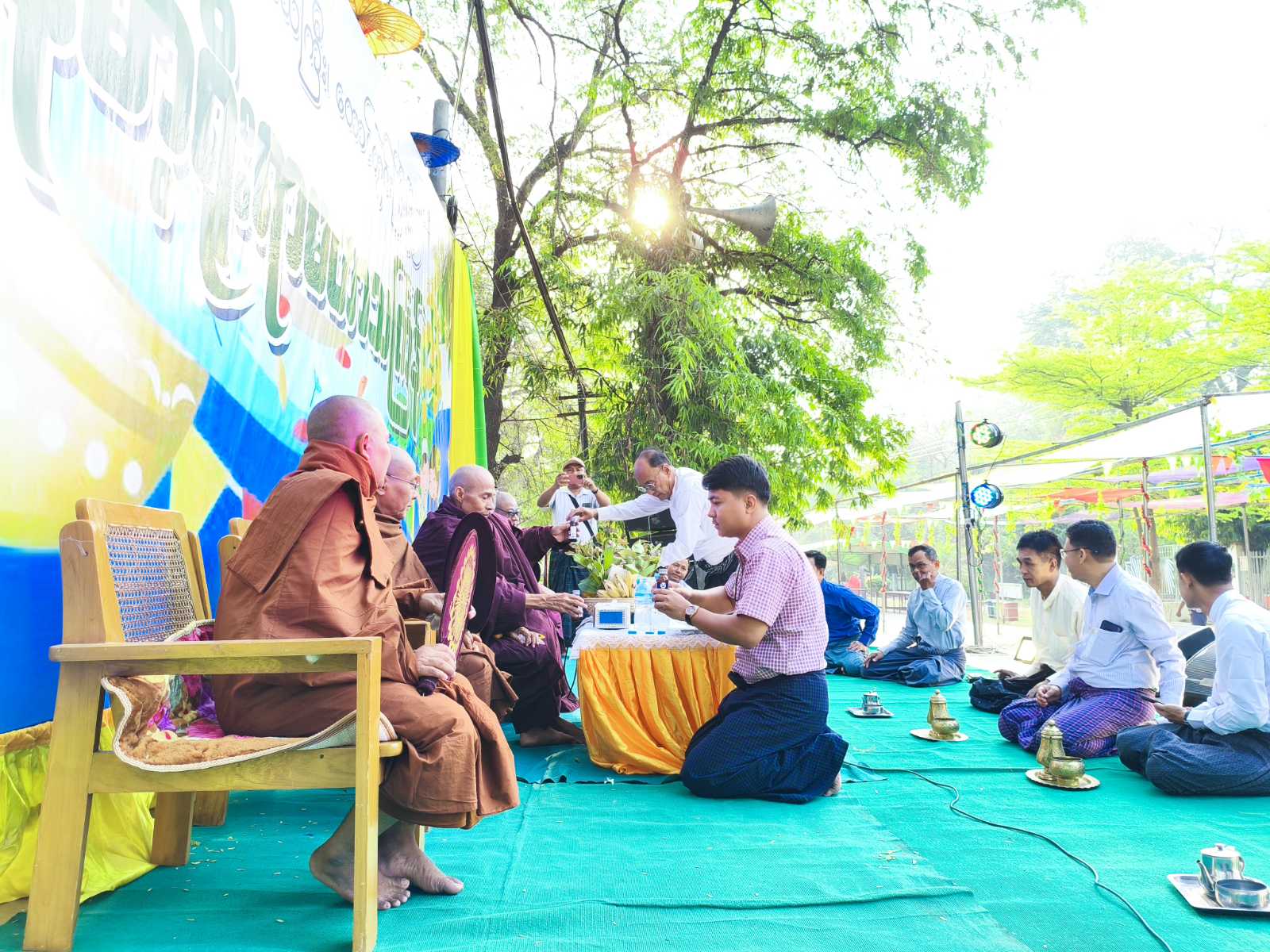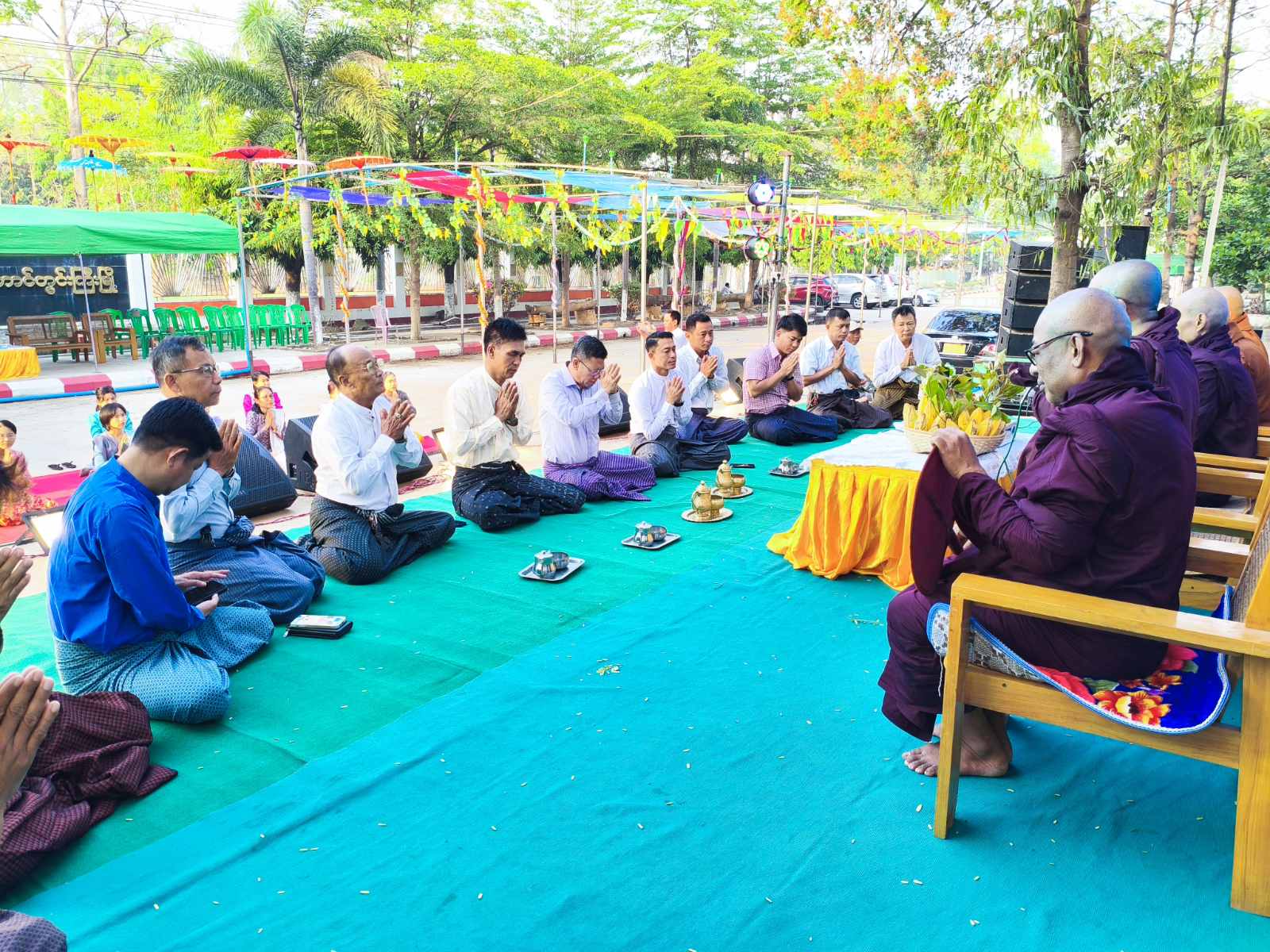 အခမ်းအနားတွင် မြို့နယ်သံဃာ့နာယကအဖွဲ့ဥက္ကဋ္ဌဆရာတော် သာယာအေးကျောင်းတိုက်ကြီး၏ ဦးစီးပဓာနနာယက မဟာသဒ္ဓမ္မဇောတိကဓဇဘဒ္ဒန္တစာရိတ္တ အရှင်သူမြတ်က သီလပေးတရားတော်ဟောကြားခြင်း၊ ဆရာတော်သံဃာတော်များမှ အန္တရာယ်ကင်း ပရိတ်ပဋ္ဌာန်းတရားတော်များ ရွတ်ဖတ်ပူဇော်ခြင်းနှင့် လှူဖွယ်ဝတ္ထုများ ဆပ်ကပ်လှူဒါန်းခဲ့သည်။