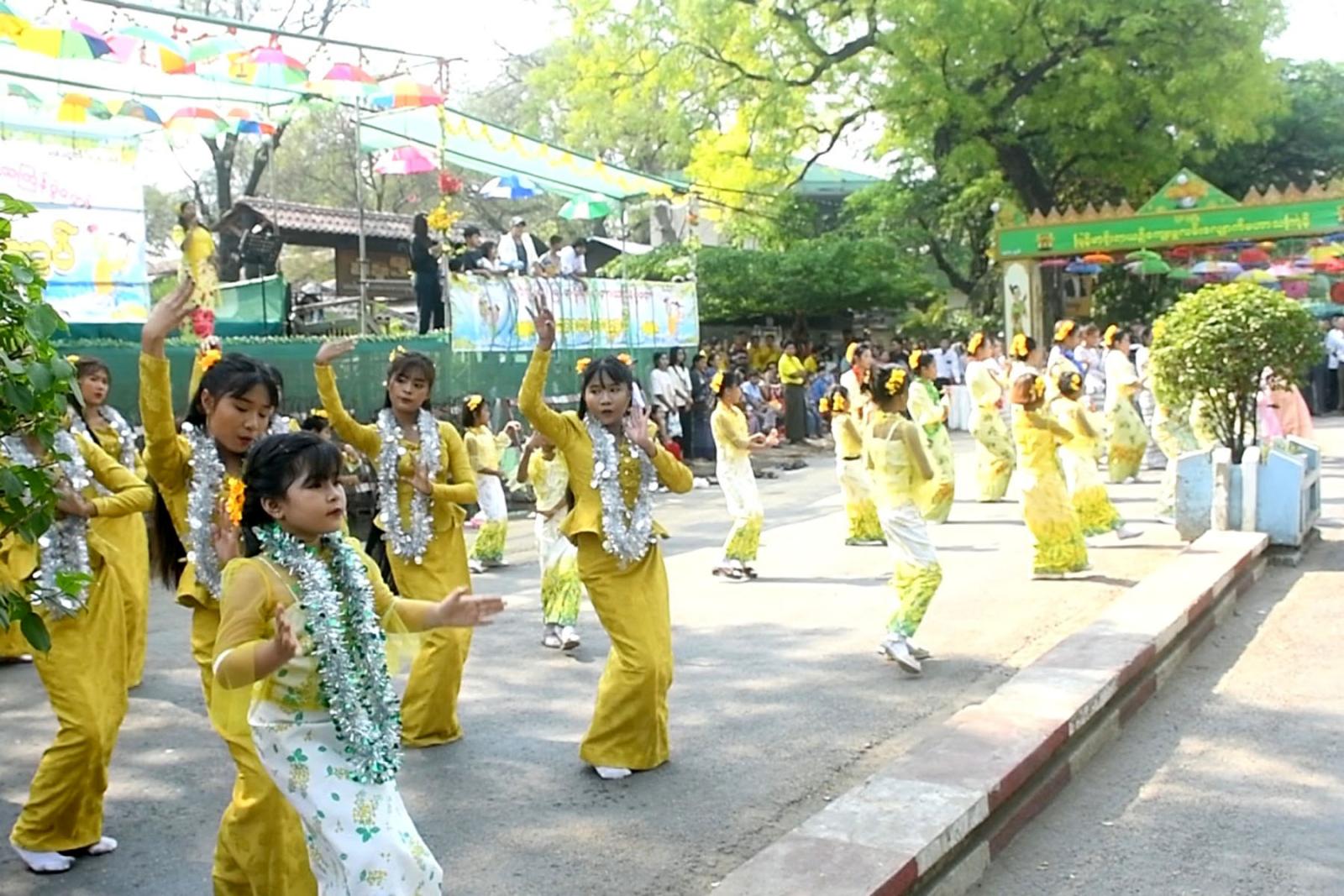မြန်မာ့ရိုးရာ လမ်းလျှောက်သင်္ကြန်ဖွင့်ပွဲတွင် ယိမ်းအဖွဲ့များ ကပြဖျော်ဖြေခြင်း၊ ဝါသနာရှင် အဆိုရှင်များမှ သီဆိုဖျော်ဖြေခြင်း၊ စတုဒိသာများ ကျွေးမွေးခဲ့ကြပြီး မိဘပြည်သူများ ပျော်ရွှင် အေးချမ်းစွာဖြင့် ရေကစားလျက်ရှိကြောင်း သိရသည်။