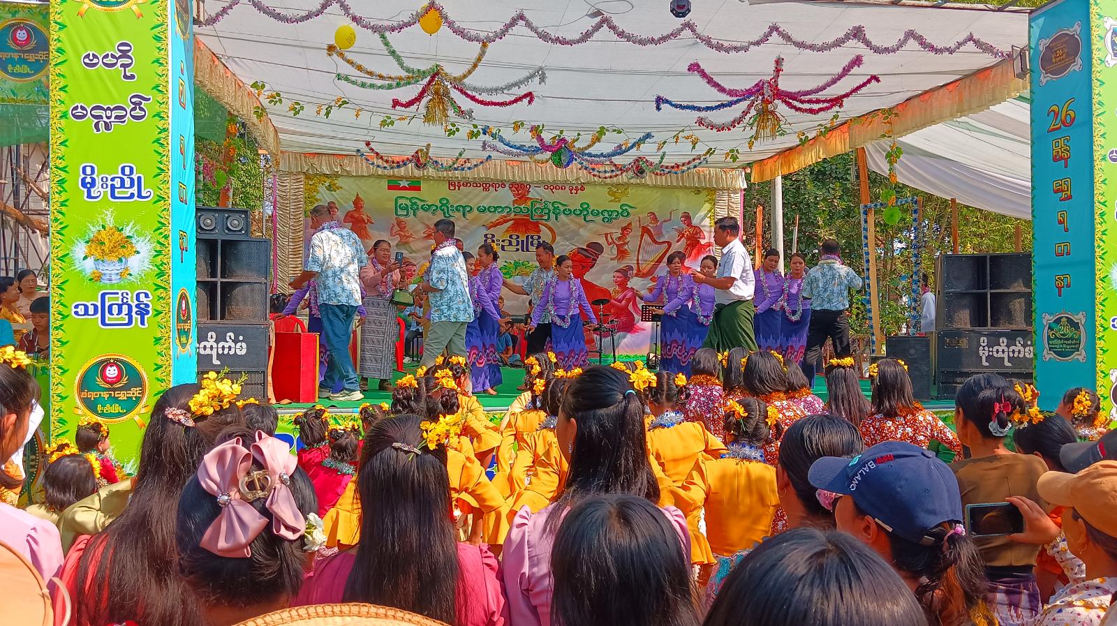 ဦးစွာ မြို့နယ်စီမံခန့်ခွဲရေးနှင့်အုပ်ချုပ်ရေးကော်မတီဥက္ကဋ္ဌ ဦးဖုန်းလွင်က နှစ်သစ်ကူး နှုတ်ခွန်းဆက်စကားပြောကြားခဲ့သည်။ ထို့နောက် မြန်မာ့ရိုးရာမဟာသင်္ကြန် ဗဟိုရေကစားမဏ္ဍပ်အား မြို့နယ်စီမံခန့်ခွဲရေးနှင့်အုပ်ချုပ်ရေးကော်မတီဥက္ကဋ္ဌနှင့် အဖွဲ့ဝင်များက ဖဲကြိုးဖြတ်ဖွင့်လှစ်ပေးခဲ့ပြီး ဧည့်သည်တော်များနှင့်အတူ မြန်မာ့ရိုးရာအစဉ်အလာနှင့်အညီ သပြေခက်ဖြင့် မာလာရေစင်ပက်ဖျန်းပေးကာ အတာသင်္ကြန်အားကြိုဆို၍ မြူမှောင်ဝေကင်းသီချင်းဖြင့် ယိမ်းအဖွဲ့များက စုပေါင်းသီဆိုဖျော်ဖြေခဲ့ကြသည်။