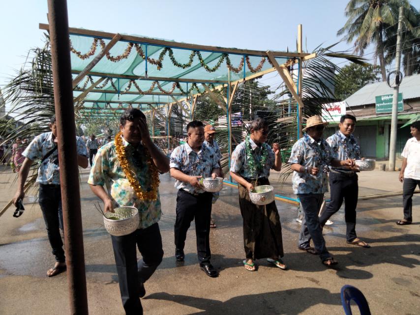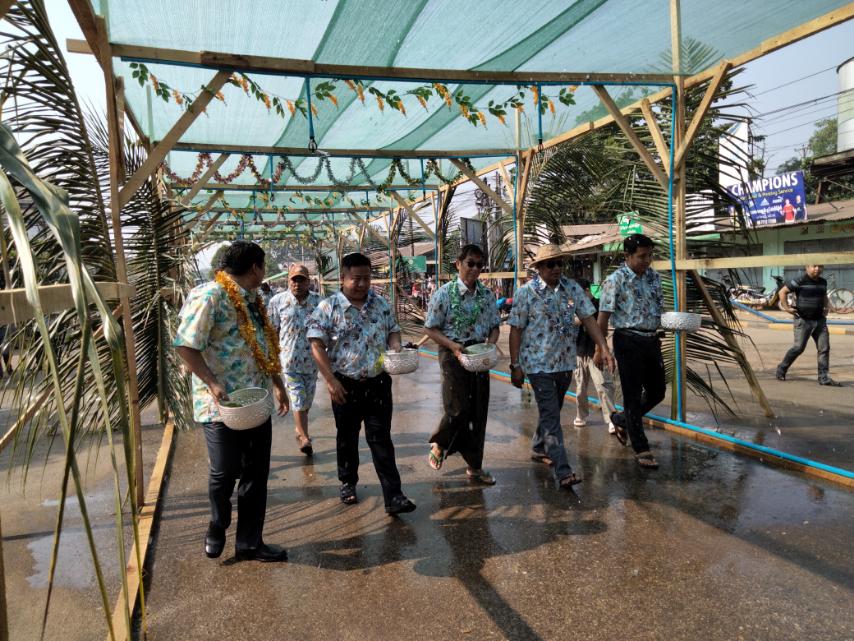 မဟာသင်္ကြန်ပွဲတော်ကာလအတွင်း ရပ်ကွက်ကျေးရွာများ၌ စတုဒိသာများကျွေးမွေးခြင်း ဆောင်ရွက်လျက်ရှိရာ ပြည်သူများ အန္တရာယ်ကင်းရှင်းစွာ ရေဆော့ကစားနိုင်စေရန် လုံခြုံရေးများလည်း ထားရှိပေးလျက်ရှိကြောင်း မြို့နယ်စီမံအုပ်ချုပ်ရေးအဖွဲ့ထံမှ သိရသည်။
