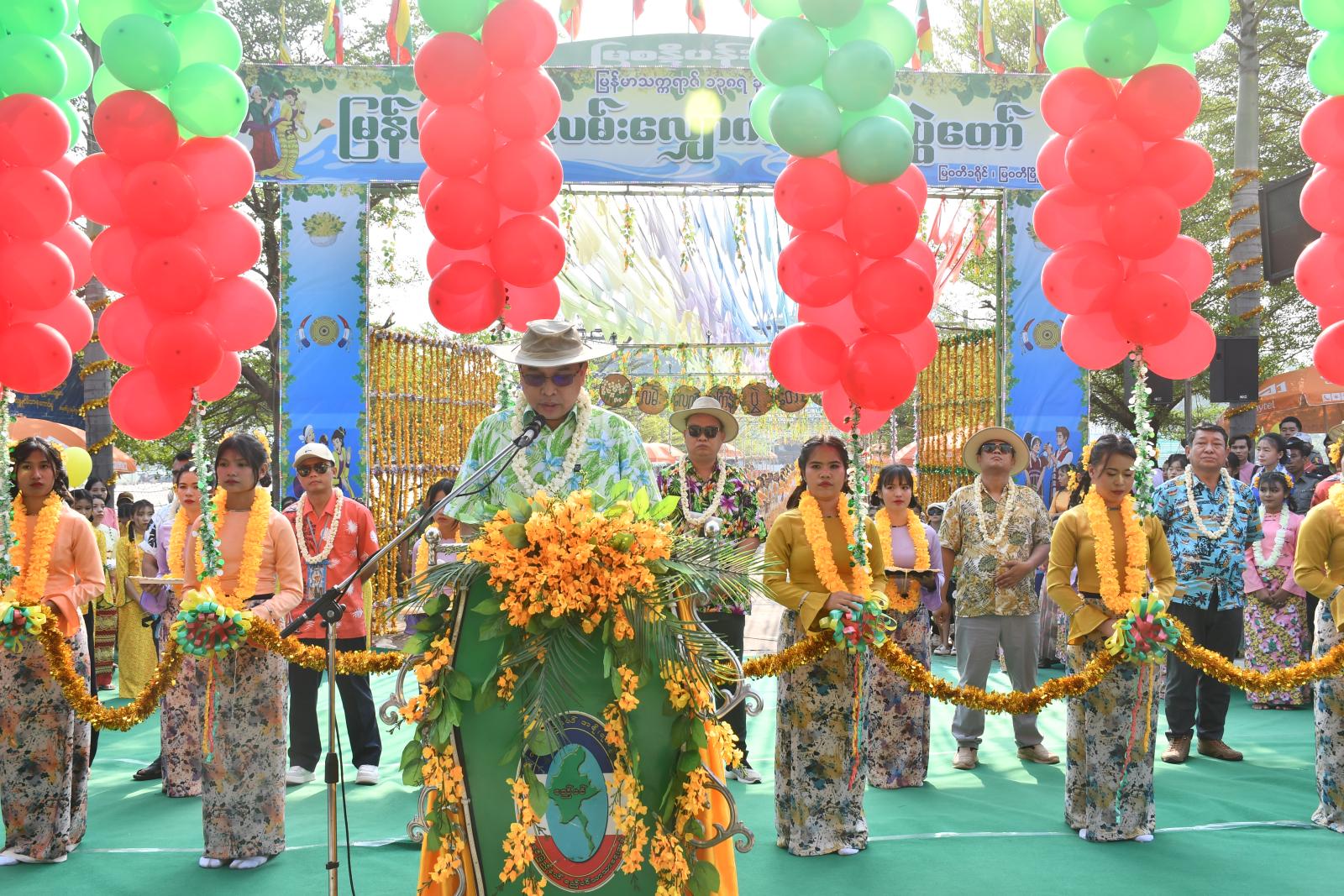 ဦးစွာ အခမ်းအနားတွင် ခရိုင်စီမံအုပ်ချုပ်ရေးအဖွဲ့ (မြဝတီခရိုင်) ဥက္ကဋ္ဌ ဦးကောင်းစံလင်းက မြန်မာ့ရိုးရာအတာသင်္ကြန်ပွဲတော် ဖြစ်ပေါ်လာပုံသမိုင်းကြောင်းနှင့် နှစ်သစ်ကူးနှုတ်ခွန်းဆက် စကားများကို ပြောကြားခဲ့သည်။