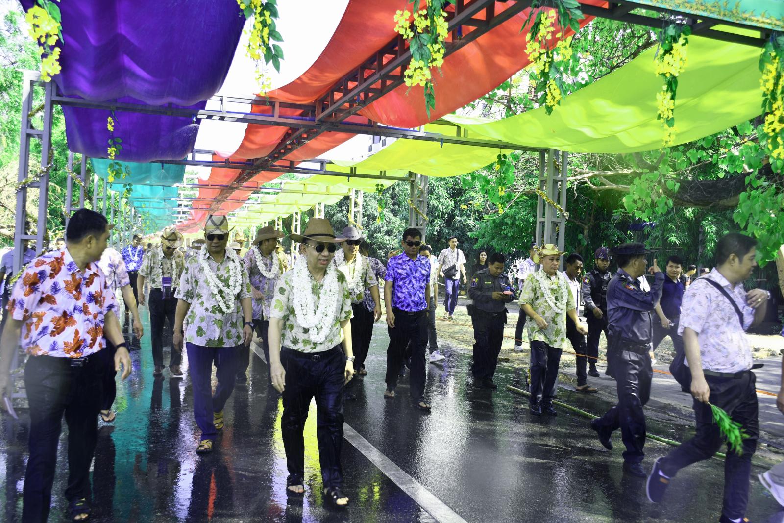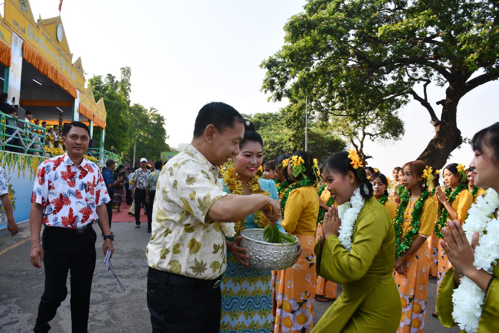 ဖွင့်ပွဲအခမ်းအနားတွင် တိုင်းဒေသကြီးဝန်ကြီးချုပ်က နှစ်သစ်ဆုတောင်းစကား ပြောကြားရာတွင် မဟာသင်္ကြန်ပွဲတော်သည် မြန်မာတို့၏ တန်ဖိုးမဖြတ်နိုင်သော ရိုးရာယဉ်ကျေးမှုပွဲတော် တစ်ခုဖြစ်သည့်အပြင် တစ်ဦးနှင့် တစ်ဦးချစ်ကြည်ရင်းနှီးမှုပိုမိုရရှိလာစေခြင်း၊ မေတ္တာစိတ်ဖြင့် သည်းခံခွင့်လွှတ်ခြင်းများ တိုးပွားလာစေခြင်း ဓလေ့စရိုက်ကောင်းများဖြစ်ထွန်းစေခြင်းစသည့် အနှစ်သာရများနှင့် ကျင်းပသည့်ထူးခြားလေးနက်တဲ့ မြန်မာ့ရိုးရာ ပွဲတော်ကြီးဖြစ်သဖြင့် ယဉ်ကျေးမှုအစဉ်အလာ မြင့်မားသည့် လူမျိုးတွင် မြန်မာလူမျိုးသည် ထိပ်ဆုံးမှ ပါဝင်သည့်အတွက် အစဉ်အလာကောင်းများကို ဆက်လက်ထိန်းသိမ်းဆောင်ရွက်ကြစေလိုကြောင်း၊ နှစ်သစ်ကူးအခါသမယတွင် ဘုရားပုထိုး၊ စေတီ၊ တန်ဆောင်း၊ ကျောင်းကန် များသို့ သွားရောက်ပြီး ဥပုသ်သီတင်းသီလဆောက်တည်ခြင်း အလှူဒါနပြုခြင်း၊ နှစ်ဟောင်းမှ အညစ်အကြေးများကို အတာရေဖြင့် ဆေးကြောသန့်စင်ခြင်း၊ မြန်မာ့နှစ်ဆန်းတစ်ရက်နေ့တွင် သံဃာတော် အရှင်သူမြတ် များက ရပ်ကွက်များ၊ လမ်းများအလိုက် အန္တရာယ်ကင်း ပရိတ်တရားတော်များ ရွတ်ဖတ်သရဇ္ဈယ်ခြင်း၊ ရေစက်သွန်းချ အမျှပေးဝေကြခြင်း၊ မိမိထက် အသက်အရွယ်ကြီး၍ သက်ကြီးရွယ်အို အဘိုး၊ အဘွား၊ မိဘ၊ ဆရာသမားများကို ပူဇော်ခြင်း၊ ဘေးမဲ့လွှတ်ခြင်း စသည့် နှစ်လိုဖွယ်ရာ ကောင်းမှုကုသိုလ်များကို မြန်မာပြည်သူပြည်သားအားလုံးပြုလုပ်ကြသည့်ပွဲတော်ကြီး လည်းဖြစ်ပါကြောင်း၊ ယခုနှစ် အတာသင်္ကြန်တွင် မြန်မာလူမျိုးများ၏ ဂုဏ်သိက္ခာ၊ မြန်မာ့ရိုးရာ ယဉ်ကျေးမှုအမွေအနှစ်များကို စိတ်သစ်လူသစ် ခွန်အားသစ်များဖြင့် ထိန်းသိမ်းစောင့်ရှောက်ရင်း ယဉ်ကျေး သိမ်မွေ့စွာ ပါဝင်ဆင်နွှဲကြစေလိုကြောင်း၊ အထူးသဖြင့် လူငယ်များအနေနဲ့ မြန်မာ့ရိုးရာသင်္ကြန်ရဲ့အနှစ်သာရကို မပျောက်ပျက်စေဘဲ ပျော်ရွှင်စွာရေကစားနိုင်ကြပါစေကြောင်း ပြောကြားသည်။
