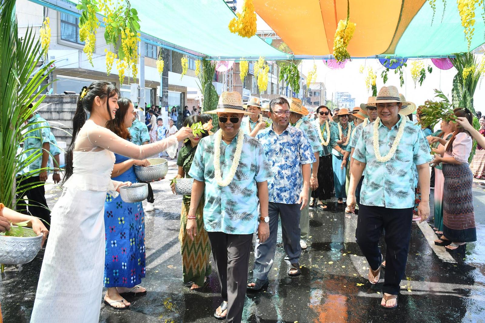 ထို့နောက် မြိတ်မြို့ ကမ်းနားလမ်းရှိ လမ်းလျှောက်သင်္ကြန်ကို အဝင်မုခ်ဦး၌ တိုင်းမှူးနှင့်တာဝန်ရှိသူများ က ဖဲကြိုးဖြတ် ဖွင့်လှစ်ပေးခဲ့ကြပြီး လမ်းလျှောက်သင်္ကြန်လျှောက်လမ်းအတိုင်း သင်္ကြန်ချစ်သူပြည်သူများနှင့်အတူ ဖျော်ဖြေနေမှုအား ကြည့်ရှုအားပေးကြသည်။ ဆက်လက်၍ ရေပုန်းရပ်ကွက်ရှိ အတာတန်ခူးမှာပျော်မြူးမယ်ဖျော်ရေးမဏ္ဍပ်အား ခရိုင်စီမံခန့်ခွဲရေးနှင့်အုပ်ချုပ်ရေး ကော်မတီဥက္ကဋ္ဌနှင့် တာဝန်ရှိသူ များက ဖဲကြိုးဖြတ်ဖွင့်လှစ်ပေးကြပြီး ယိမ်းအကအဖွဲ့များက အကအလှများဖြင့် ဖျော်ဖြေကာ သင်္ကြန်ပွဲတော်ကို စတင်ဆင်နွှဲကြသည်။