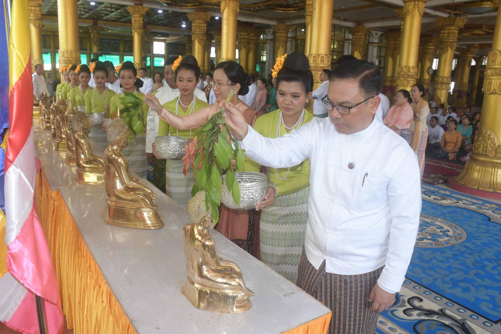 ဆက်လက်၍ ဘုရားရေသပ္ပါယ်အခမ်းအနားကို နမောတဿသုံးကြိမ်ရွတ်ဆို ဘုရားရှိခိုး၍ ဖွင့်လှစ်ကြပြီး ပြည်နယ်ဝန်ကြီးချုပ်နှင့်ဇနီး တာဝန်ရှိသူများသည် နံ့သာသွေးပွဲမှရရှိလာသော နံ့သာရေများဖြင့် ရခိုင်ရိုးရာစဉ်လာမပျက် အတုလမာရဇိန်ပြည်လုံးချမ်းသာ ဘုရားကြီးရှိ ဗုဒ္ဓဆင်းတုတော်များအား ဘုရားရေသပ္ပါယ် ပူဇော်ခဲ့ကြသည်။ ယင်းနောက် ပြည်နယ်ဝန်ကြီးချုပ်နှင့်ဇနီး၊ ပြည်နယ်အစိုးရအဖွဲ့ဝင်များ၊ ဌာနဆိုင်ရာများသည် သင်္ကြအကြို၊ အတာအကြိုအဖြစ် အတာရေများဖြင့် တစ်ဦးကိုတစ်ဦး ပက်ဖြန်းပေးခဲ့ကြကြောင်း သိရသည်။