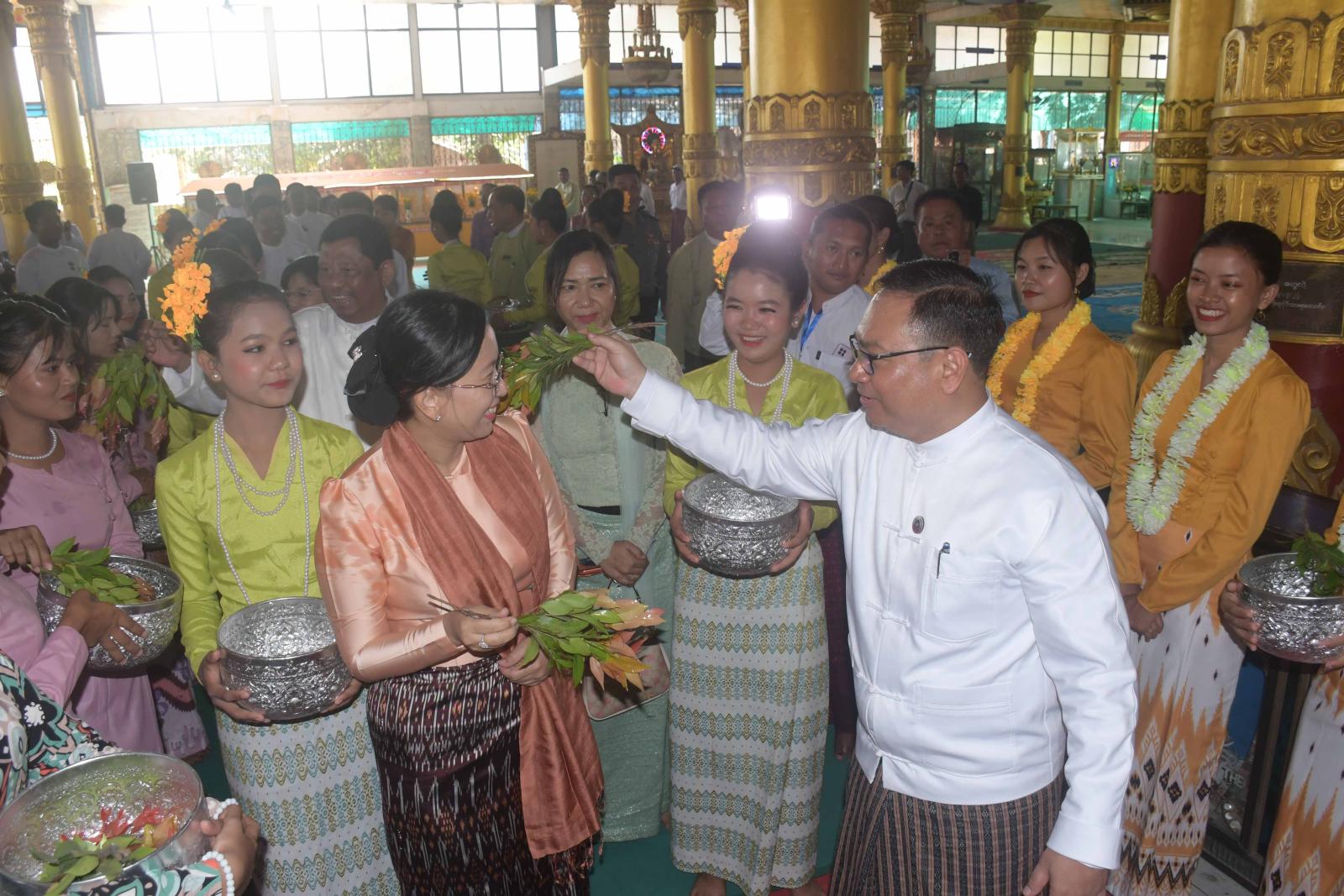 ရခိုင်ပြည်နယ်အစိုးရအဖွဲ့က ကြီးမှူး၍ ၁၃၈၇ ခုနှစ်၊ မဟာသင်္ကြန်ပွဲတော် ရခိုင်ရိုးရာနံ့သာသွေးပွဲနှင့် ဘုရားရေသပ္ပါယ်ပွဲကို ယနေ့နံနက်ပိုင်းက စစ်တွေမြို့၊ ဦးဥတ္တမခန်းမနှင့် အတုလမာရဇိန် ပြည်လုံးချမ်းသာ ဘုရားကြီးတို့၌ကျင်းပရာ ရခိုင်ပြည်နယ်ဝန်ကြီးချုပ် ဦးနိုင်ဦးနှင့် ဇနီးပြည်နယ် အမျိုးသမီးရေးရာအဖွဲ့နာယက ဒေါ်ထက်စန္ဒာကျော်၊ ရခိုင်ပြည်နယ်လွှတ်တော်ဥက္ကဋ္ဌ ဒေါက်တာစန်းရွှေ၊ ပြည်နယ်တရားလွှတ်တော် တရားသူကြီးချုပ်၊ ဒေသကွပ်ကဲရေးမှူး၊ ရခိုင်ပြည်နယ်လွှတ်တော် ဒုတိယဥက္ကဋ္ဌ၊ ပြည်နယ်အစိုးရအဖွဲ့ဝင်များနှင့် ဇနီးများ၊ ရခိုင်ပြည်နယ်လွှတ်တော်ကိုယ်စားလှယ်များ၊ ဌာနဆိုင်ရာများ၊ မြို့မိ၊ မြို့ဖများ၊ နံ့သာသွေးအဖွဲ့များနှင့် ယိမ်းအကအဖွဲ့များတက်ရောက်ကြသည်။