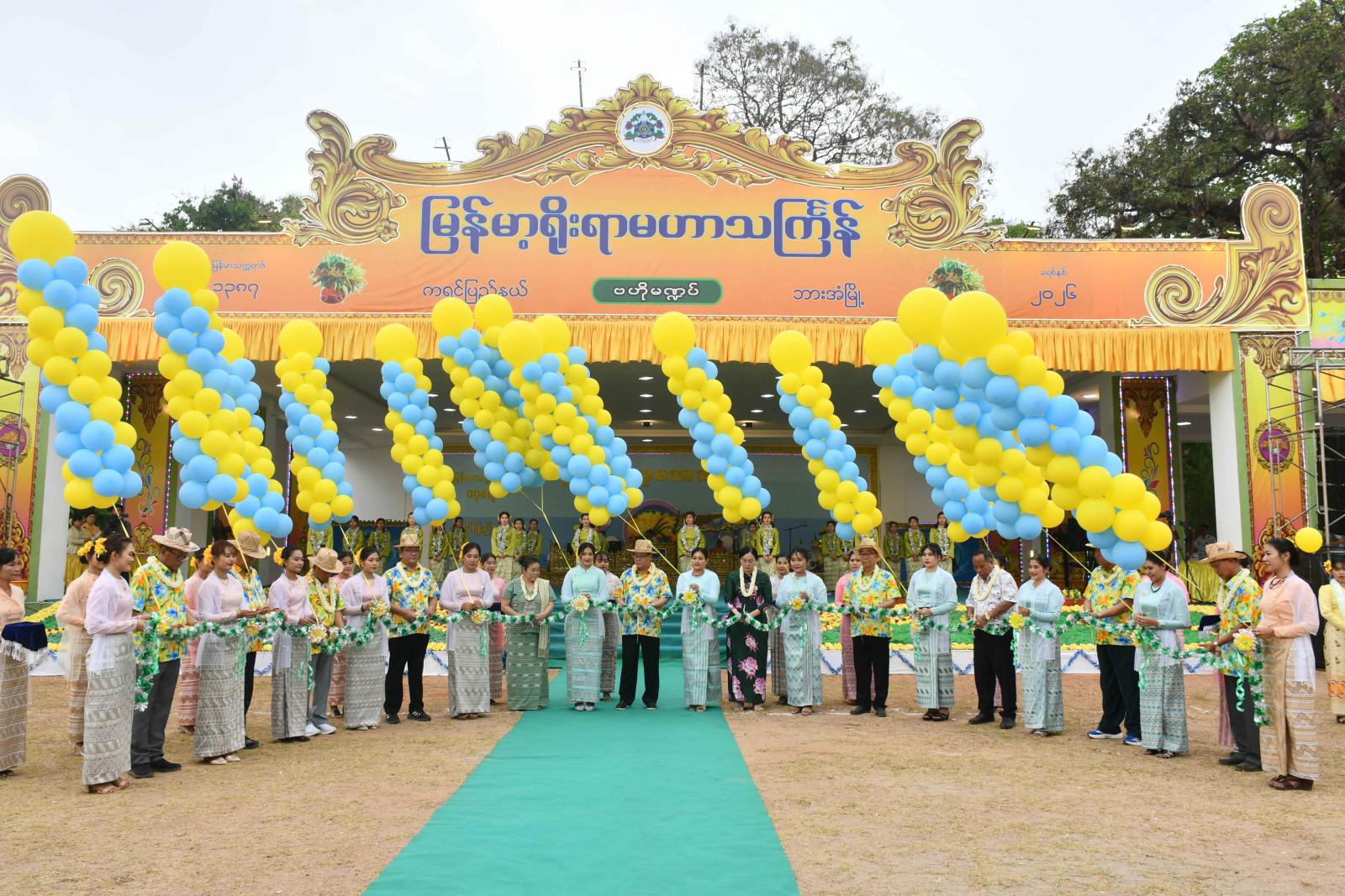 ထို့နောက် ပြည်နယ်ဝန်ကြီးချုပ် ဦးစောမြင့်ဦး၊ ပြည်နယ်အမျိုးသမီးရေးရာအဖွဲ့နှင့် မိခင်နှင့်ကလေးစောင့်ရှောက်မှုူကြီးကြပ်ရေးအဖွဲ့နာယက ဒေါ်နန်းဘေဘီမြင့်၊ ပြည်နယ်လွှတ်တော်ဥက္ကဋ္ဌ ဦးစန်းကို၊ ပြည်နယ်တရားလွှတ်တော်တရားသူကြီးချုပ် ဦးညွန့်လင်း၊ ပြည်နယ်အစိုးရအဖွဲ့ဝင်ဝန်ကြီးများ၊ တိုင်ရင်းသားလက်နက်ကိုင်ငြိမ်းချမ်းရေး အဖွဲ့အစည်းများမှ တာဝန်ရှိသူများက မြန်မာ့ရိုးရာမဟာသင်္ကြန်ပွဲတော် ဗဟိုမဏ္ဍပ်အား ဖဲကြိုးဖြတ်ဖွင့်လှစ်ပေးကြပြီး မဟာသင်္ကြန်ယိမ်းအကအဖွဲ့များက မြူမှောင်ဝေကင်းတေးသီးချင်းဖြင့် တွဲ့ဖက်၍ စုပေါင်းကပြဖျော်ဖြေကြရာ ပြည်နယ်ဝန်ကြီးချုပ်နှင့် တာဝန်ရှိသူများက တက်ရောက်လာသော ယိမ်းအကအဖွဲ့များ၊ တပ်မတော်နှင့်ငြိမ်းချမ်းရေးအဖွဲ့အစည်းများမှ တာဝန်ရှိသူများ၊ နိုင်ငံရေးပါတီများ၊ ပြည်နယ်၊ ခရိုင်၊ မြို့နယ်အဆင့်ဌာနဆိုင်ရာများ၊ လူမှုရေးအသင်းအဖွဲ့များ၊ တိုင်းရင်းသားပြည်သူများအား အမွှေးနံ့သာရည်၊ အောင်သပြေခက်တို့ဖြင့် အတာရေအေးပက်ဖြန်း၍ ပျော်ရွှင်စွာစုပေါင်းရေကစားခဲ့ကြသည်။