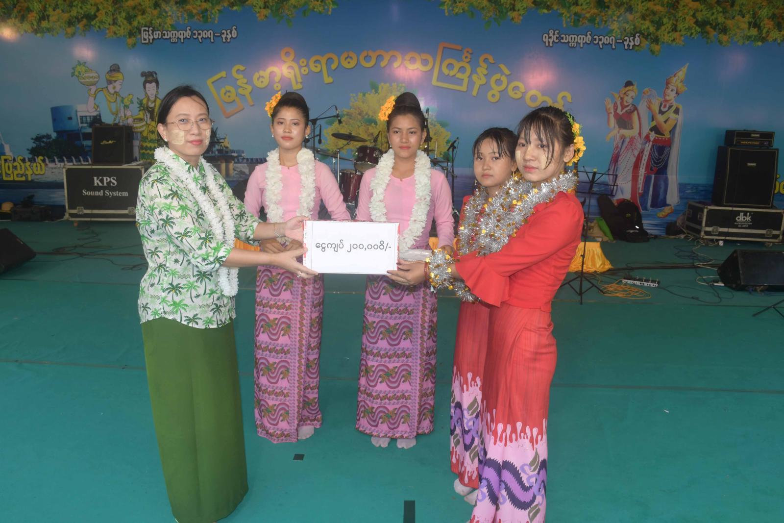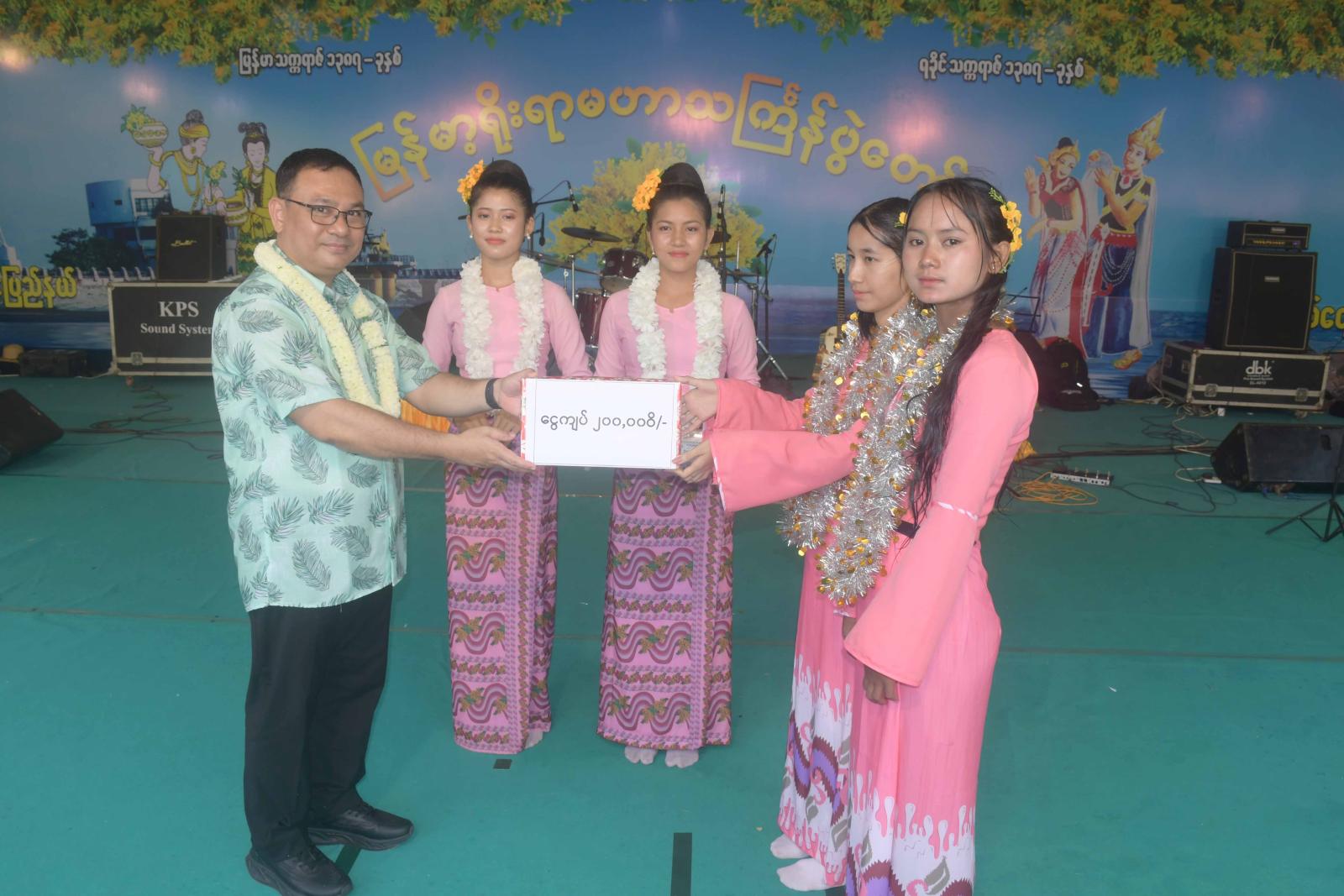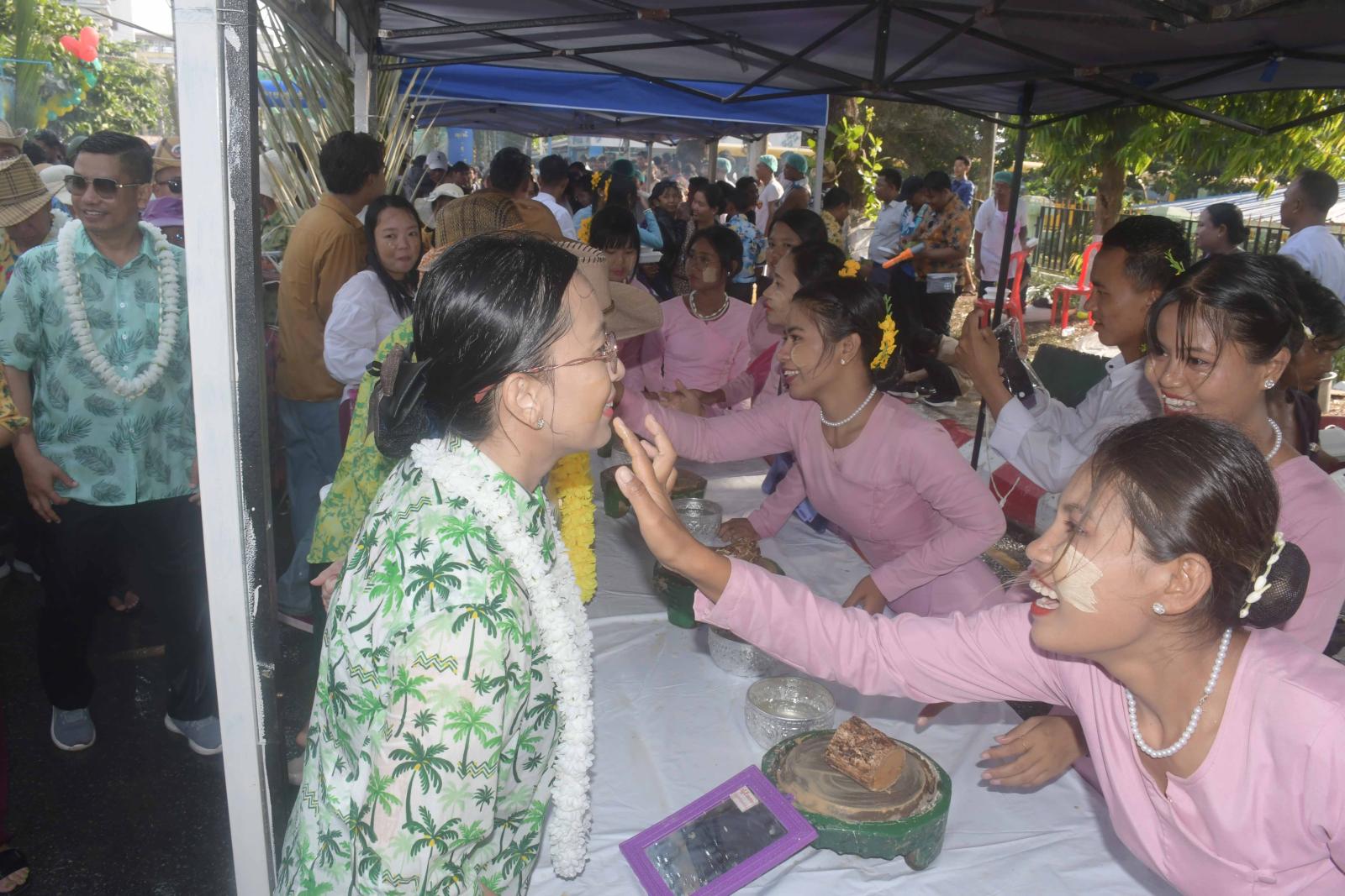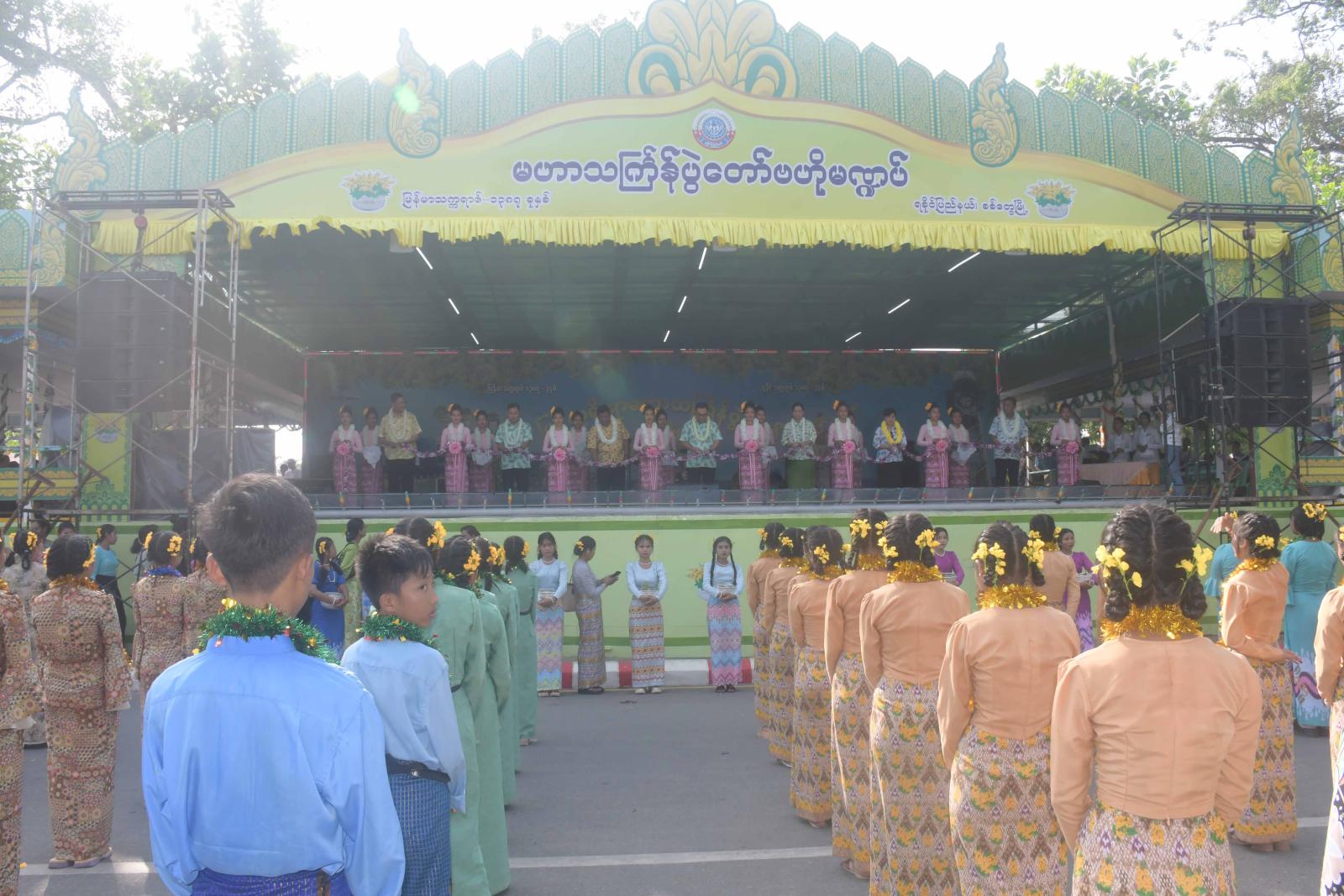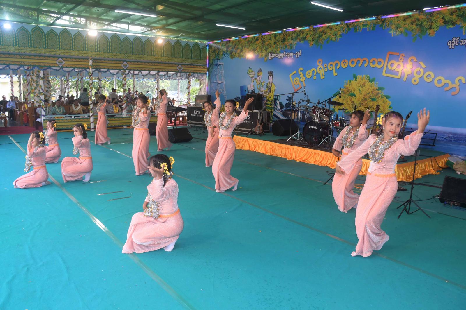 ယင်းနောက် ရခိုင်ပြည်နယ်ယဉ်ကျေးမှုယိမ်းအကအဖွဲ့များက ပျိုအလှနန့်ခါသင်္ကြန်တေးသီချင်းဖြင့် သီဆိုကပြဖျော်ဖြေကြရာ ပြည်နယ်ဝန်ကြီးချုပ်နှင့်ဇနီး တာဝန်ရှိသူများက ယိမ်းအကအဖွဲ့များနှင့် မဏ္ဍပ်ဖွင့်ပွဲသို့ တက်ရောက်လာကြသူများအား သပြေခက်ဖြင့် ပက်ဖျန်းပေးကြသည်။