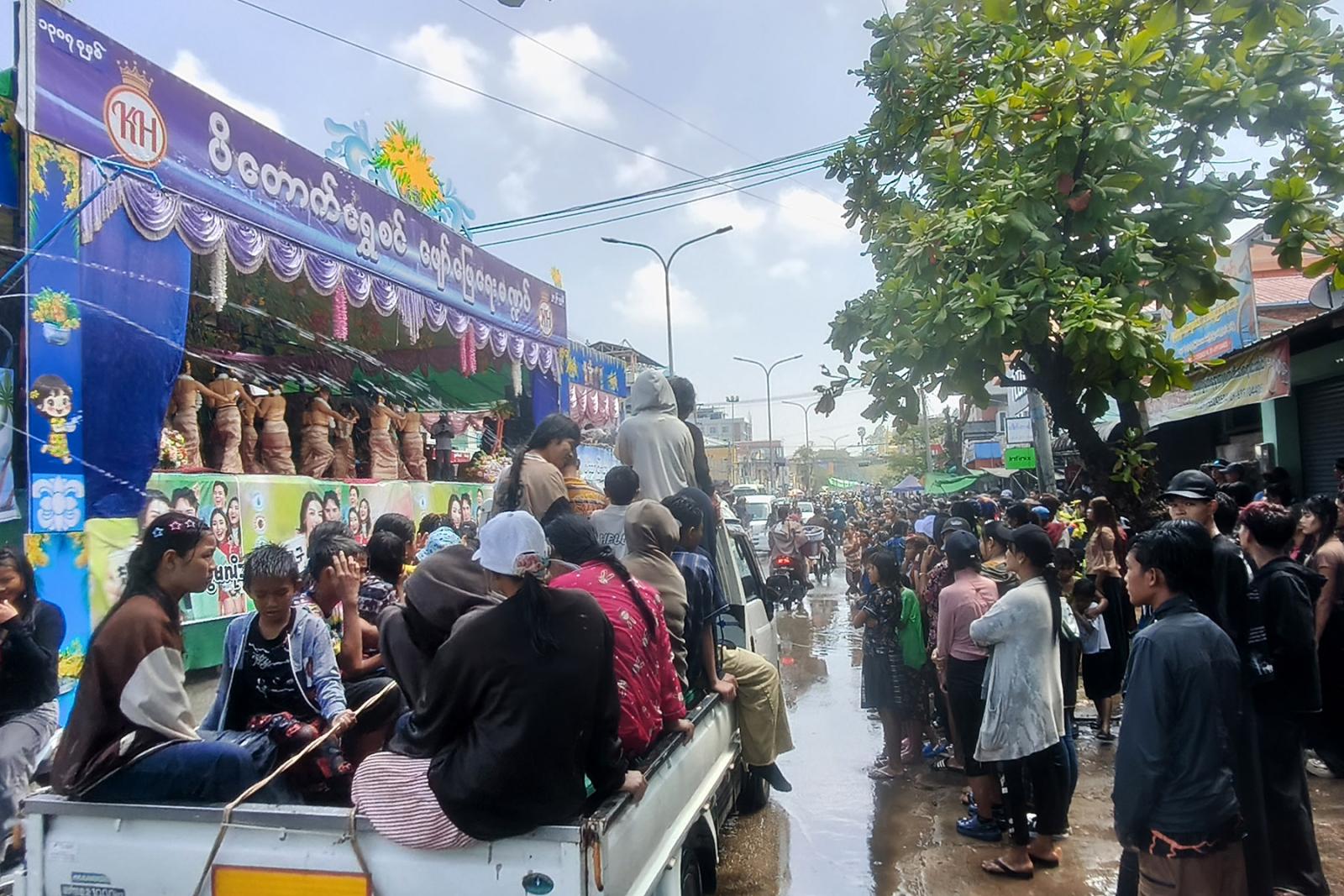 မြန်မာ့ရိုးရာမဟာသင်္ကြန်ပွဲတော်ကို သင်္ကြန်ချစ်သူများမှ အေးချမ်းပျော်ရွှင်စွာဖြင့် မော်တော်ယာဉ်များ၊ မော်တော်ဆိုင်ကယ်များဖြင့် ရေပက်ခံထွက်၍ အတာရေသဘင်ပွဲတော်ကို နွှဲပျော်လျက်ရှိကြပြီး လူငယ်များ အစုအဖွဲ့အလိုက်၊ မိသားစုအလိုက် ရေကစားမဏ္ဍပ်များဖြင့် သင်္ကြန်သီချင်းများ၊ မြူးမြူးကြွကြွ တေးသီချင်းများဖွင့်၍ နှစ်သစ်ကူးသင်္ကြန်ရေများ ပက်ဖျန်းကာ အတာရေသဘင်ပွဲတော်ကို နွှဲပျော်လျက်ရှိကြသည်။
