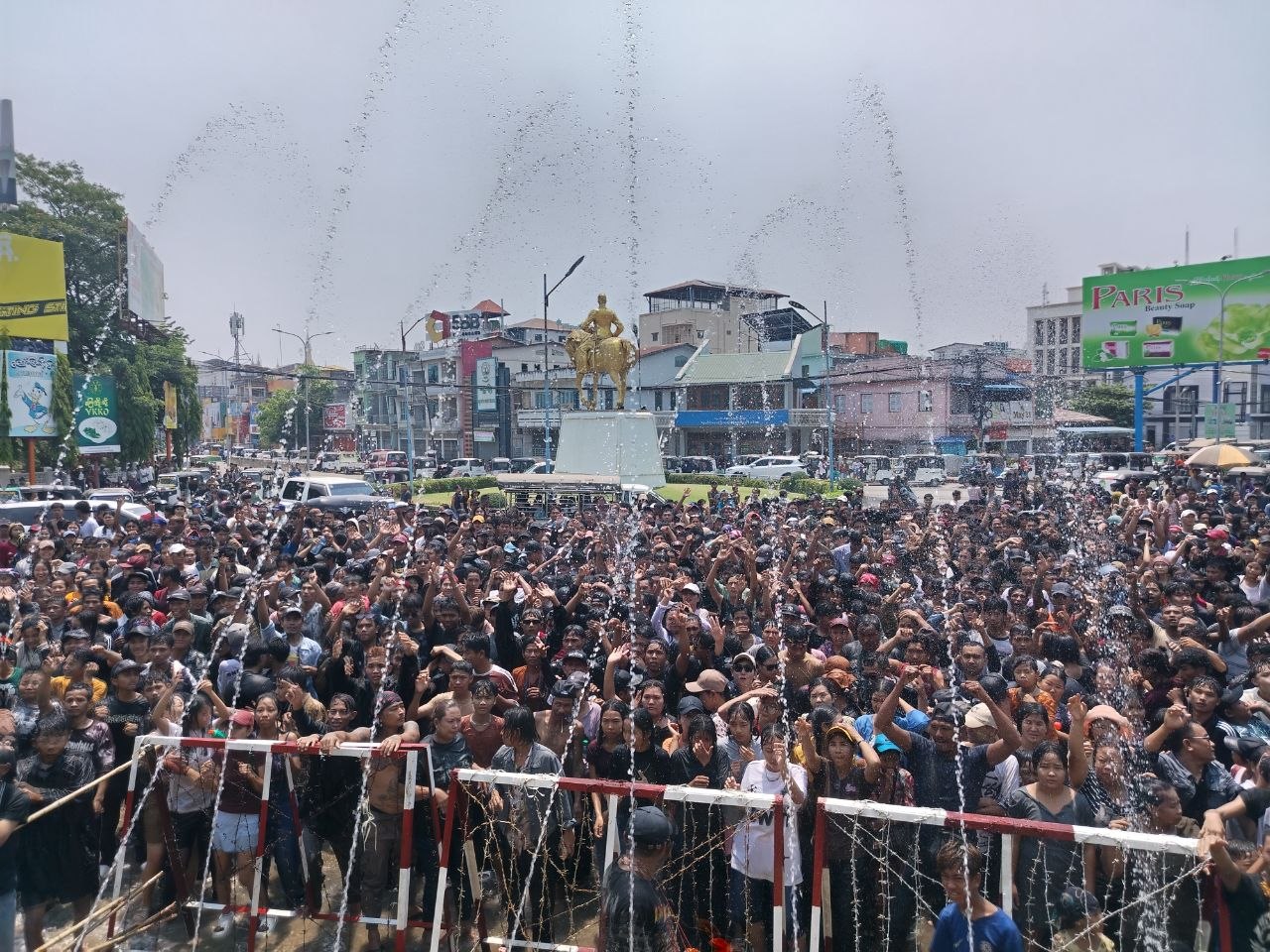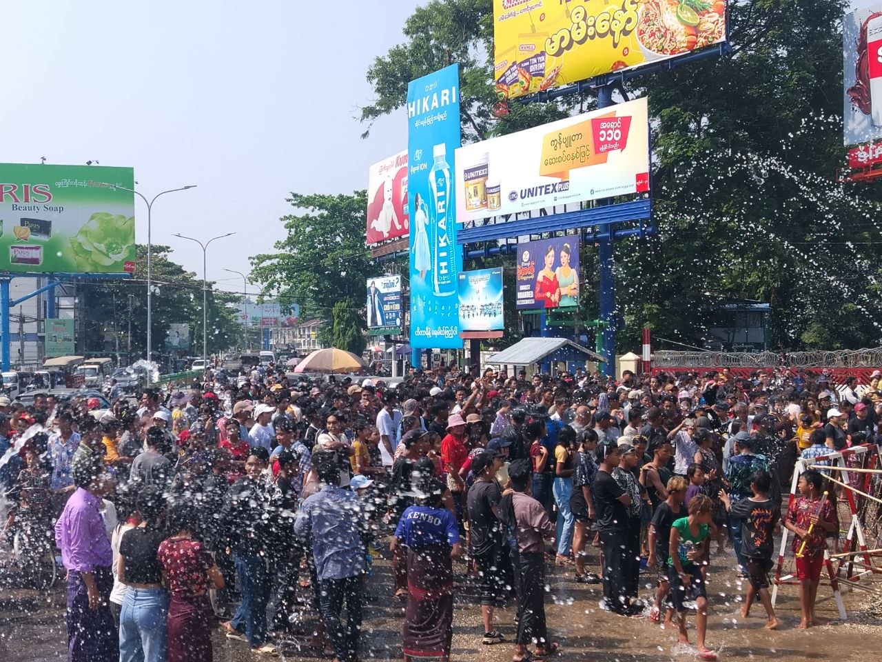 ၁၃၈၇ခုနှစ် မြန်မာ့ရိုးရာယဉ်ကျေးမှု နှစ်သစ်ကူး မဟာသင်္ကြန်ပွဲတော်(အကျနေ့) နံနက်ပိုင်းတွင် ပြည်မြို့ ဗဟိုမဏ္ဍပ်နှင့်လမ်းလျှောက်သင်္ကြန်၌ ရေကစားသူများဖြင့် အထူးစည်ကား များပြားလျက်ရှိသည်။