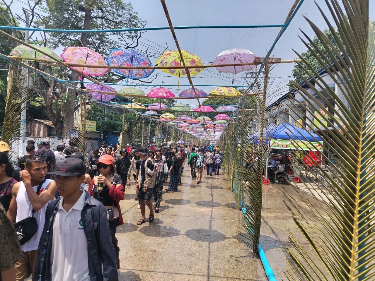 အလားတူ ပြည်မြို့ လမ်းလျှောက်သင်္ကြန်၌ လာရောက်ရေကစားသူများအား မြန်မာ့ရိုးရာ သနပ်ခါးမဏ္ဍပ်မှ သနပ်ခါးလိမ်းကျံပေးခြင်း၊ လက်ဖက်မဏ္ဍပ်မှ ရိုးရာလက်ဖက်သုပ်များ ကျွေးမွေးဧည့်ခံခြင်းတို့ဖြင့် လမ်းလျှောက်သင်္ကြန်အား ကျင်းပဆင်နွှဲလျက်ရှိပြီး ရေကစားသူများ ယာဉ်အန္တရာယ်ကင်းရှင်းရေးအတွက် တာဝန်ရှိသူများက လိုအပ်သည်များ ဆောင်ရွက်ပေးလျက်ရှိကြောင်း သိရသည်။