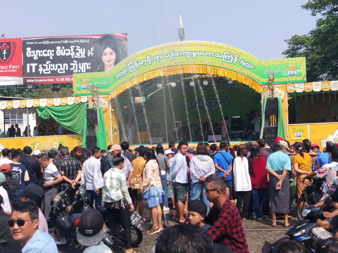 ဗဟိုမဏ္ဍပ်၌ ရေကစားသူများအား တေးသံရှင်များ၏ တေးသီချင်းသီဆိုဖျော်ဖြမှုများ၊ ဌာနဆိုင်ရာနှင့် မြို့ပေါ်ရပ်ကွက်များမှ ပြိုင်ပွဲဝင်ယိမ်းအဖွဲ့များ၏ အဖွဲ့အလိုက် ကပြဖျော်ဖြေမှုများအပါအဝင် မုန့်လုံးရေပေါ်နှင့် ကျောက်ကျောရွှေရင်အေး အစရှိသည့် ရိုးရာအစားအစာများဖြင့် ဧည့်ခံကျွေးမွေးကြပြီး ရေကစားသူများ အေးချမ်းပျော်ရွှင်စွာ ရေကစားလျက်ရှိသည်။