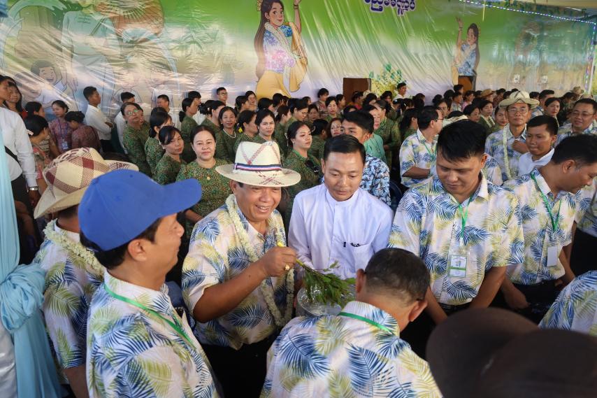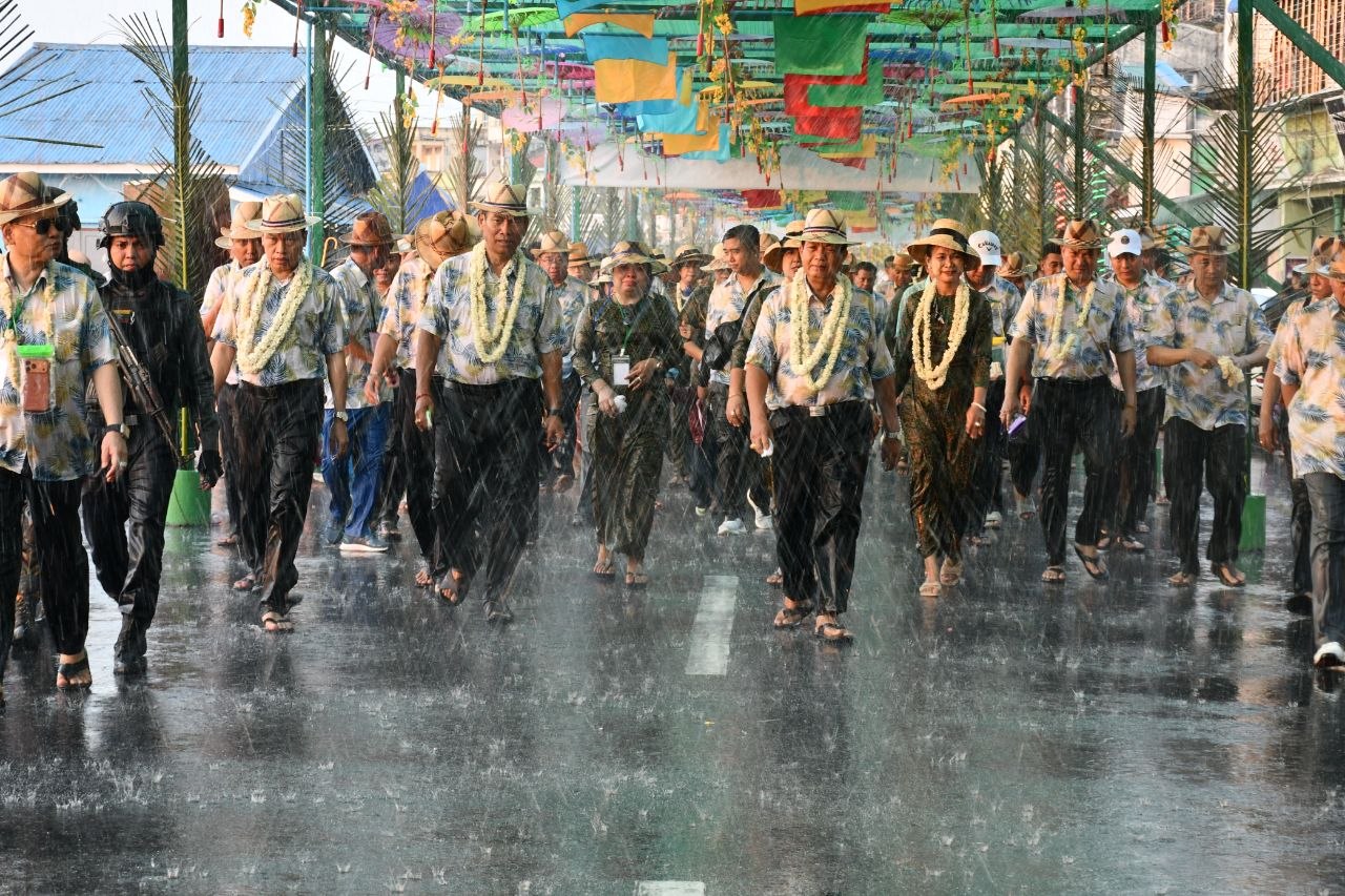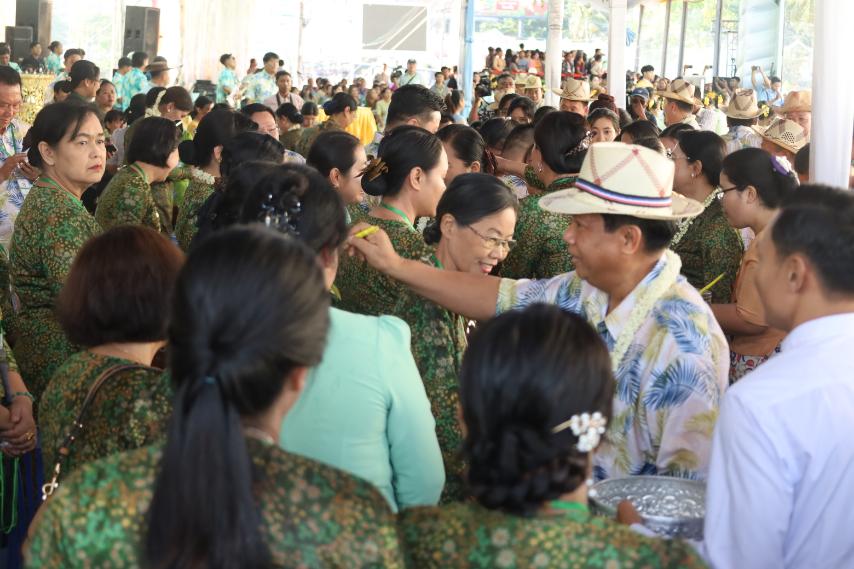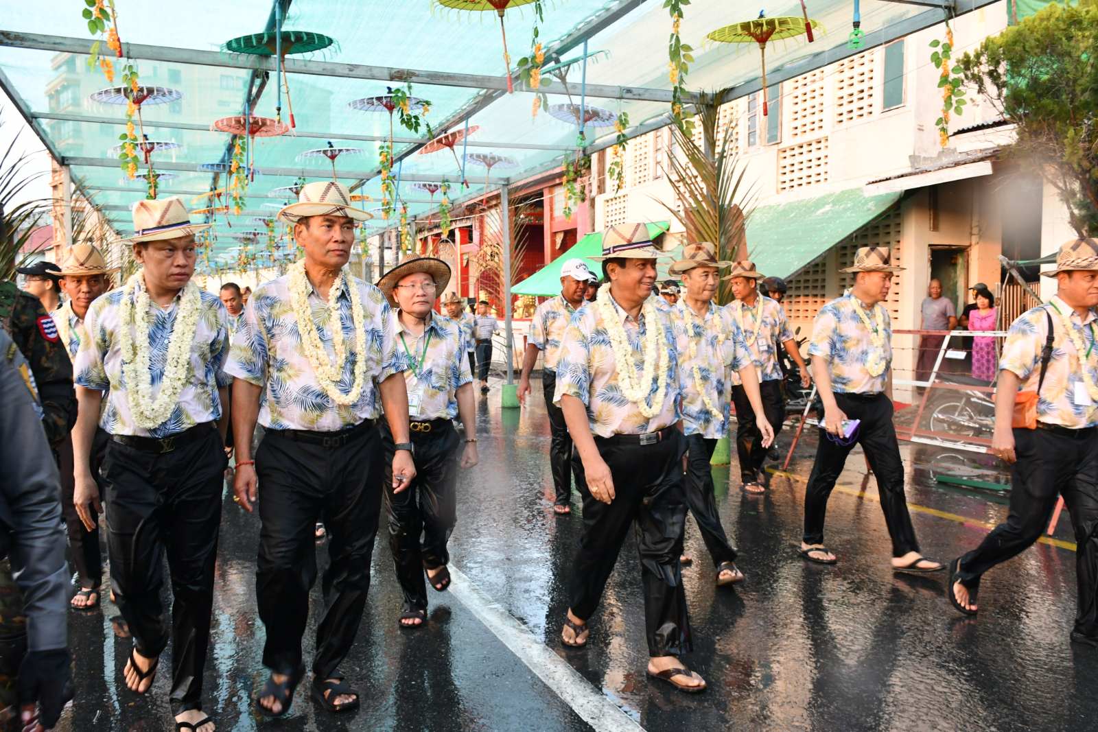 ဆက်လက်၍ တိုင်းဒေသကြီးဝန်ကြီးချုပ်နှင့်တာဝန်ရှိသူများသည် လမ်းလျှောက်သင်္ကြန် ပွဲတော်အား ဖဲကြိုးဖြတ်ဖွင့်လှစ်ပေးကာ ဌာနဆိုင်ရာမဏ္ဍပ်များနှင့် တိုင်းရင်းသားမဏ္ဍပ်အား လှည့်လည်ကြည့်ရှုအားပေးခဲ့ပြီး တိုင်းဒေသကြီးဝန်ကြီးချုပ်နှင့်တာဝန်ရှိသူများက ယိမ်းအဖွဲ့များအား ဆုချီးမြှင့်ငွေများ ပေးအပ်ခဲ့ပြီးနောက် လူမှုရေးရာဌာန၊ အောင်ချမ်းမြေ့ ရေသဘင်မဏ္ဍပ်အား ဖဲကြိုးဖြတ်ဖွင့်လှစ်ပေးကာ ယိမ်းအဖွဲ့များကို ချစ်ကြည်ရင်းနှီးစွာဖြင့် အမွှေးနံ့သာ အတာရည်များ ပက်ဖျန်းပေးခဲ့သည်။