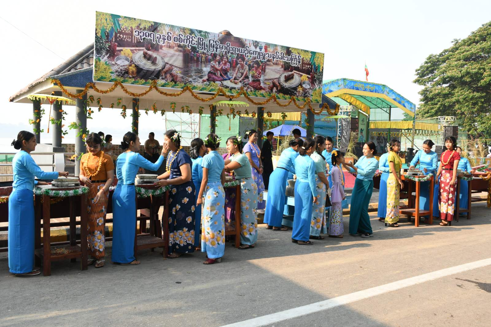 အဆိုပါဗဟိုမဏ္ဍပ်တွင် ယိမ်းအကအလှများ၊ အနုပညာရှင်နှင့် ဝါသနာရှင်အဆိုတော်များ၏ တေးဂီတအစီအစဉ်များဖြင့် ကပြ၊ သီဆိုဖျော်ဖြေလျက်ရှိရာ ပျော်ရွှင်စွာ ရေကစားကြသည်။