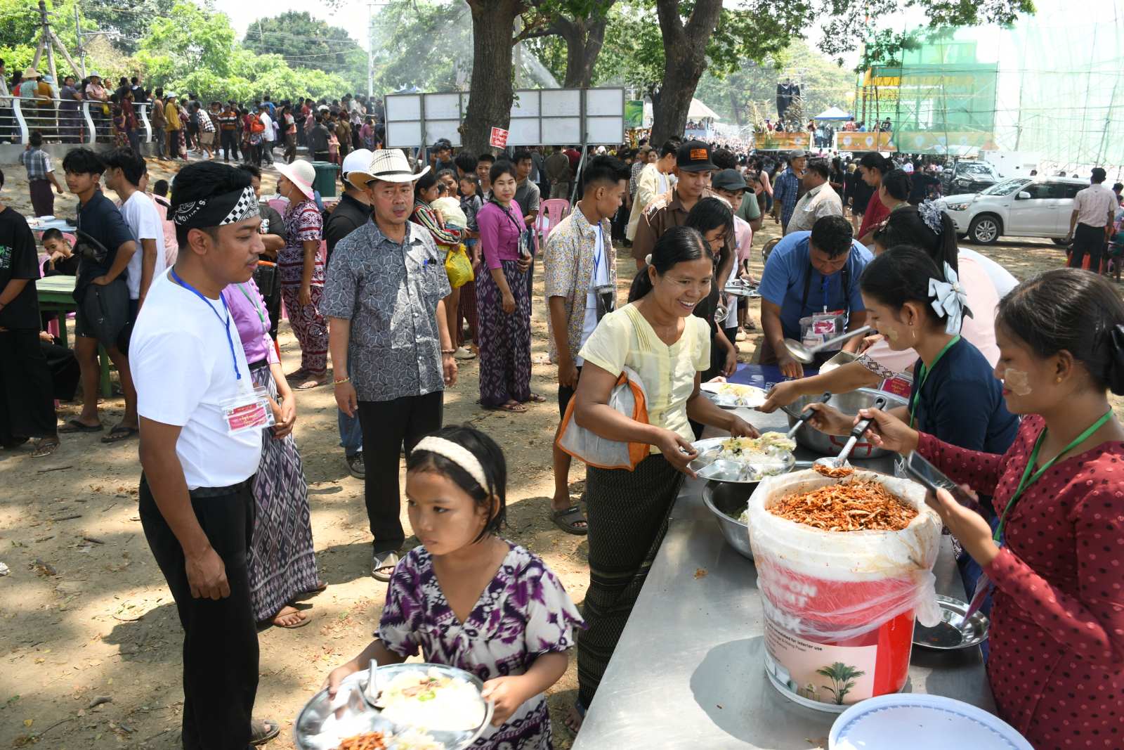 သင်္ကြန်ပွဲတော်လာရောက်သူများအား ဌာနဆိုင်ရာများနှင့်ရပ်ကွက်များက အကြိုနေ့မှ စတင်၍ စတုဒိသာများဖြင့် ဧည့်ခံကျွေးမွေးလျက်ရှိကြောင်း သိရသည်။