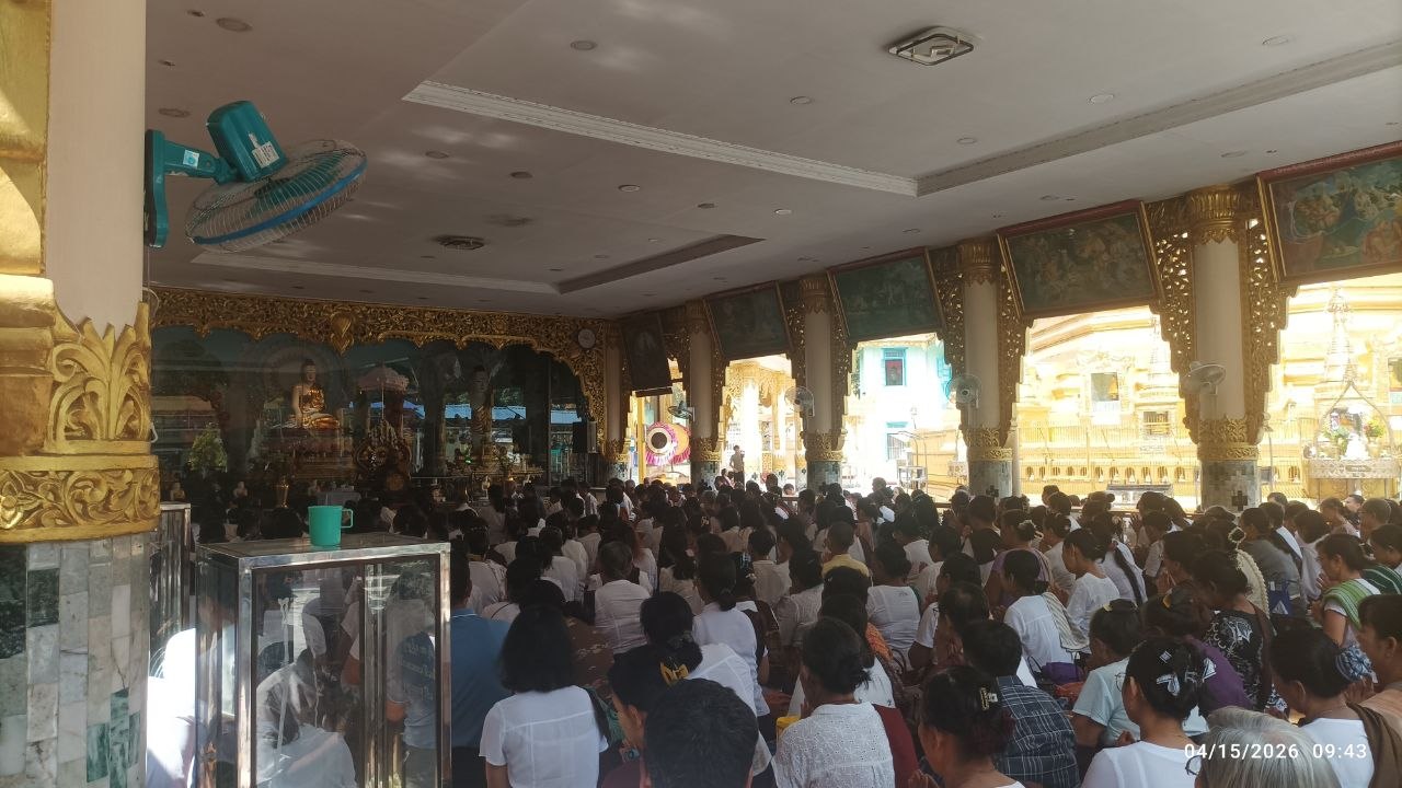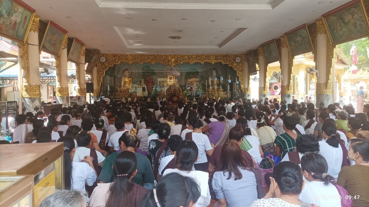 ရန်ကုန်တိုင်းဒေသကြီး၊ ဗိုလ်တထောင်ခရိုင်၊ ပုဇွန်တောင်မြို့နယ်ရှိ သမိုင်းဝင်တန်ခိုးကြီး ဘုရားဖြစ်သည့် ရွှေဘုန်းပွင့်စေတီတော်ြမတ်ကြီးတွင် ယနေ့ သင်္ကြန်အကြတ်နေ့ နံနက်ပိုင်းမှ စတင်၍ ဘုရားဖူး ပြည်သူများ လာရောက်ဖူးမြော်ကြည်ညိုကြသူ များပြားသည်။