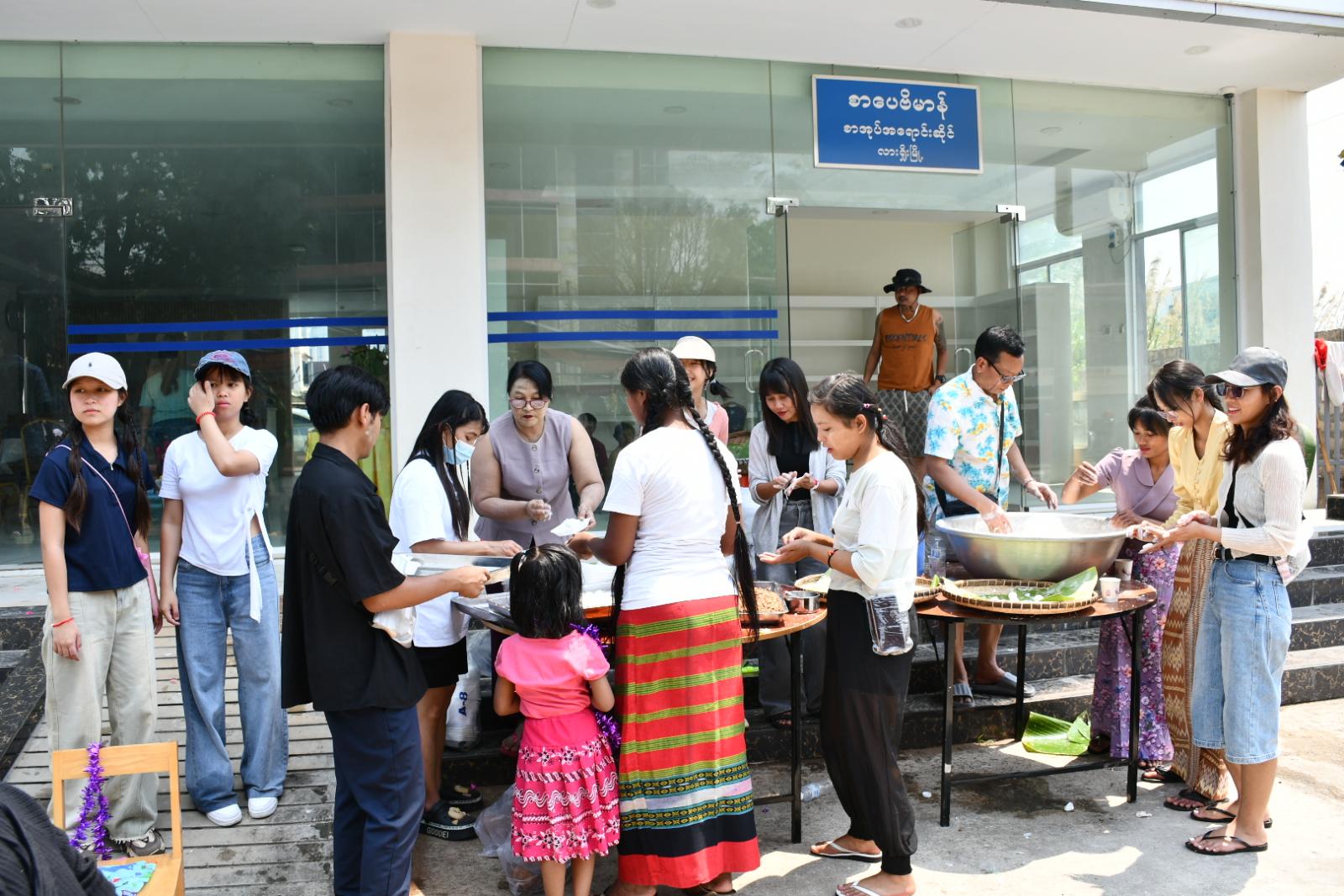 ရှမ်းပြည်နယ် (မြောက်ပိုင်း) လားရှိုးမြို့တွင် ၁၃၈၇ ခုနှစ် မြန်မာ့ရိုးရာနှစ်သစ်ကူး မဟာသင်္ကြန်ပွဲတော်အကျနေ့၌ ရေကစားလည်ပတ်သူများအား လူထုအခြေပြုဗဟိုဌာန Community Centre မှ ရာသီစာမုန့်လုံးရေပေါ်များ ပေးဝေလှူဒါန်းခဲ့သည်။