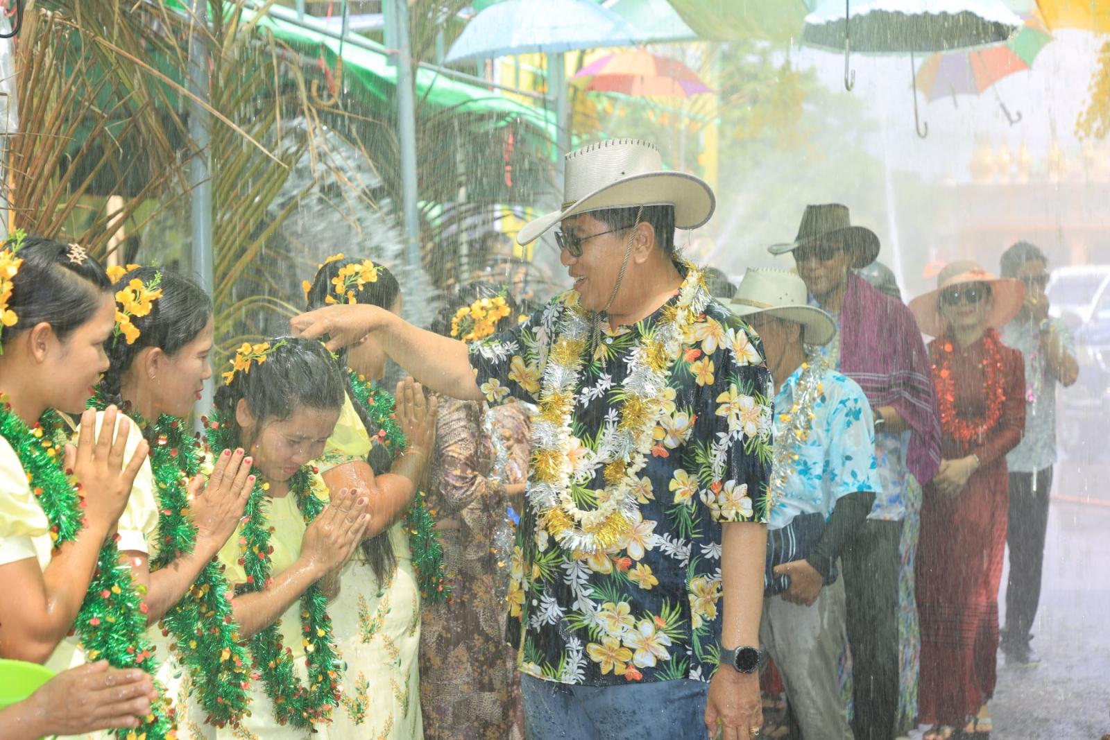 ယင်းနောက် ပြည်နယ်ဝန်ကြီးချုပ်က တက်ရောက်လာသည့် ဧည့်သည်တော်များအား အမွှေးနံ့သာရည်များဖြင့် ပက်ဖြန်းခဲ့ပြီး ဒေသခံပြည်သူများ၏ အေးချမ်းပျော်ရွှင်စွာ ရေကစားနေမှုတို့ကို လှည့်လည်ကြည့်ရှုအားပေးခဲ့ကြောင်း သိရသည်။
