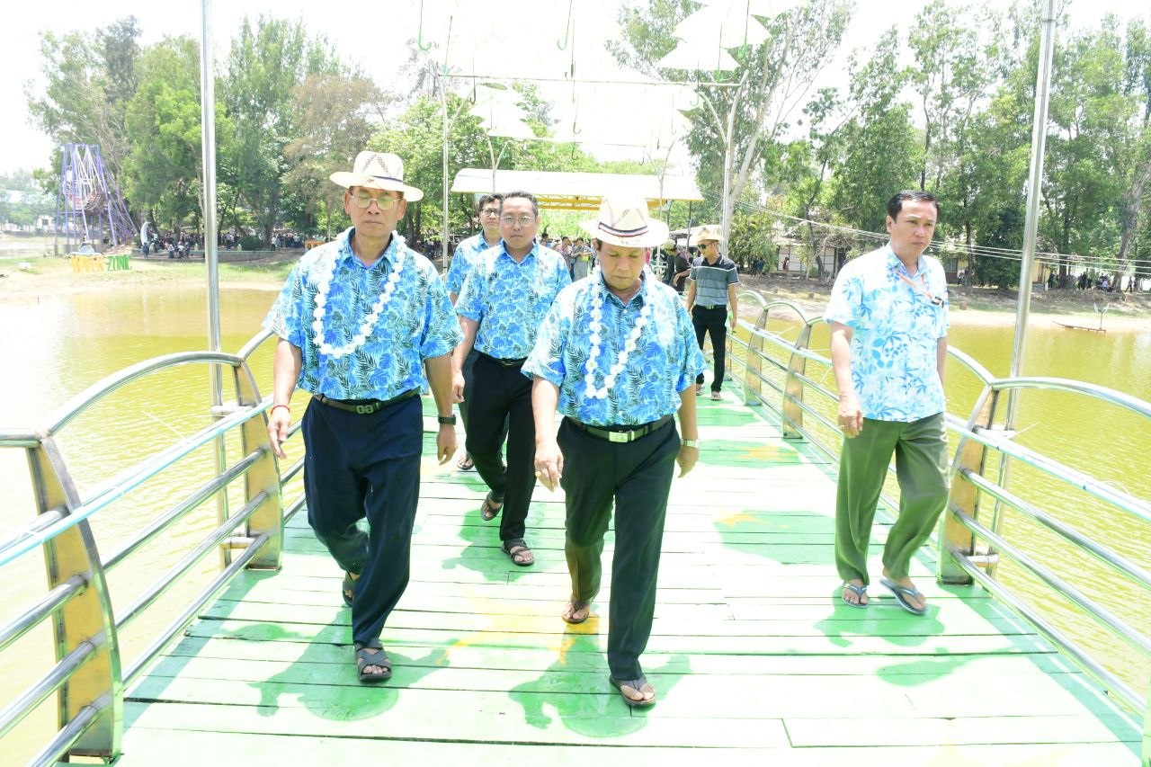 ဦးစွာ တိုင်းဒေသကြီးဝန်ကြီးချူပ်နှင့် တာဝန်ရှိသူများသည် ပုသိမ်မြို့၊ ကန်သုံးဆင့်ပန်းခြံ လူပျိုတို့ရွာ ရေကစားမဏ္ဍပ်သို့ သွားရောက်၍ ဖျော်ဖြေရေးအဖွဲ့၊ ယိမ်းအဖွဲ့ များ၏ သီဆိုကပြဖျော်ဖြေမှုများနှင့် ပြည်သူများ အေးချမ်းပျော်ရွှင်စွာ လာရောက်ရေကစားနေမှုများကို ကြည့်ရှုအားပေးခဲ့ပြီး ဖျော်ဖြေရေးနှင့်ယိမ်းအဖွဲ့များကို ဂုဏ်ပြုဆုငွေများ ပေးအပ်ချီးမြှင့်ခဲ့ကာ ပြည်သူများကို အတာရည်များ ပက်ဖျန်းပေးခဲ့သည်။