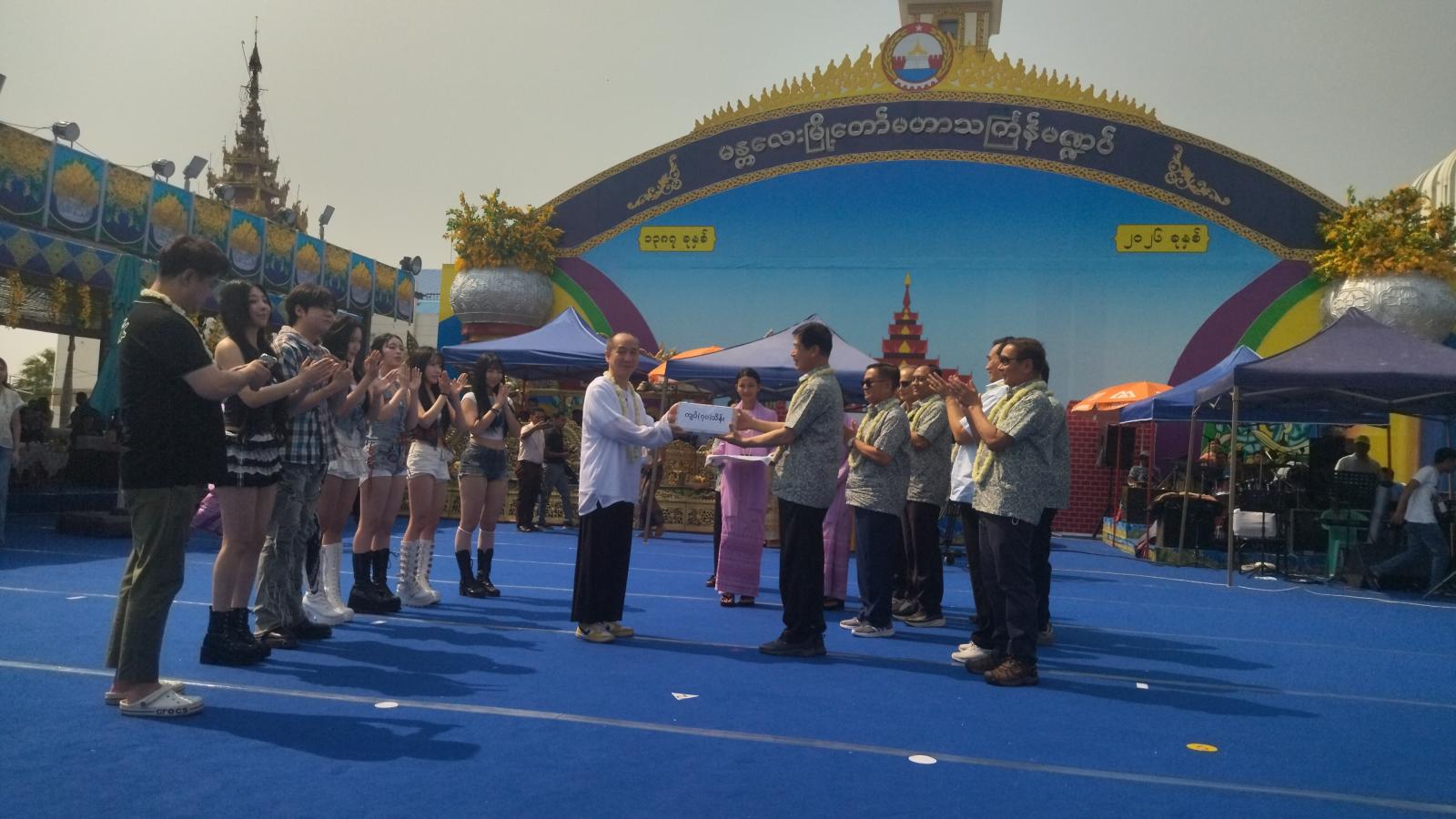 အဆိုပါ မဟာသင်္ကြန်အတက်နေ့တွင် မန္တလေးမြို့တော်မဟာသင်္ကြန်မဏ္ဍပ်၌ ယင်းသီဆိုဖျော်ဖြေ ကပြခဲ့သည့် ကိုးရီးယား k-pop သီဆိုဖျော်ဖြေအကအဖွဲ့ဝင်များအား မန္တလေးတိုင်းဒေသကြီး အစိုးရအဖွဲ့ဝန်ကြီးချုပ် ဦးမျိုးအောင်နှင့် အဖွဲ့ဝင်များက ဂုဏ်ပြုဆုငွေများလည်း ချီးမြှင့်ခဲ့ကြောင်း သိရသည်။