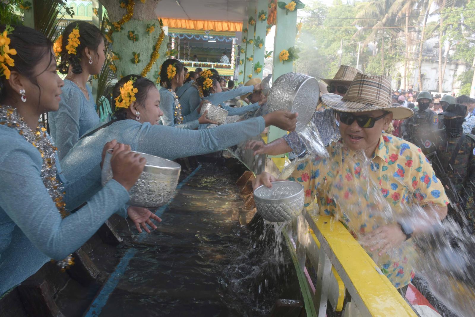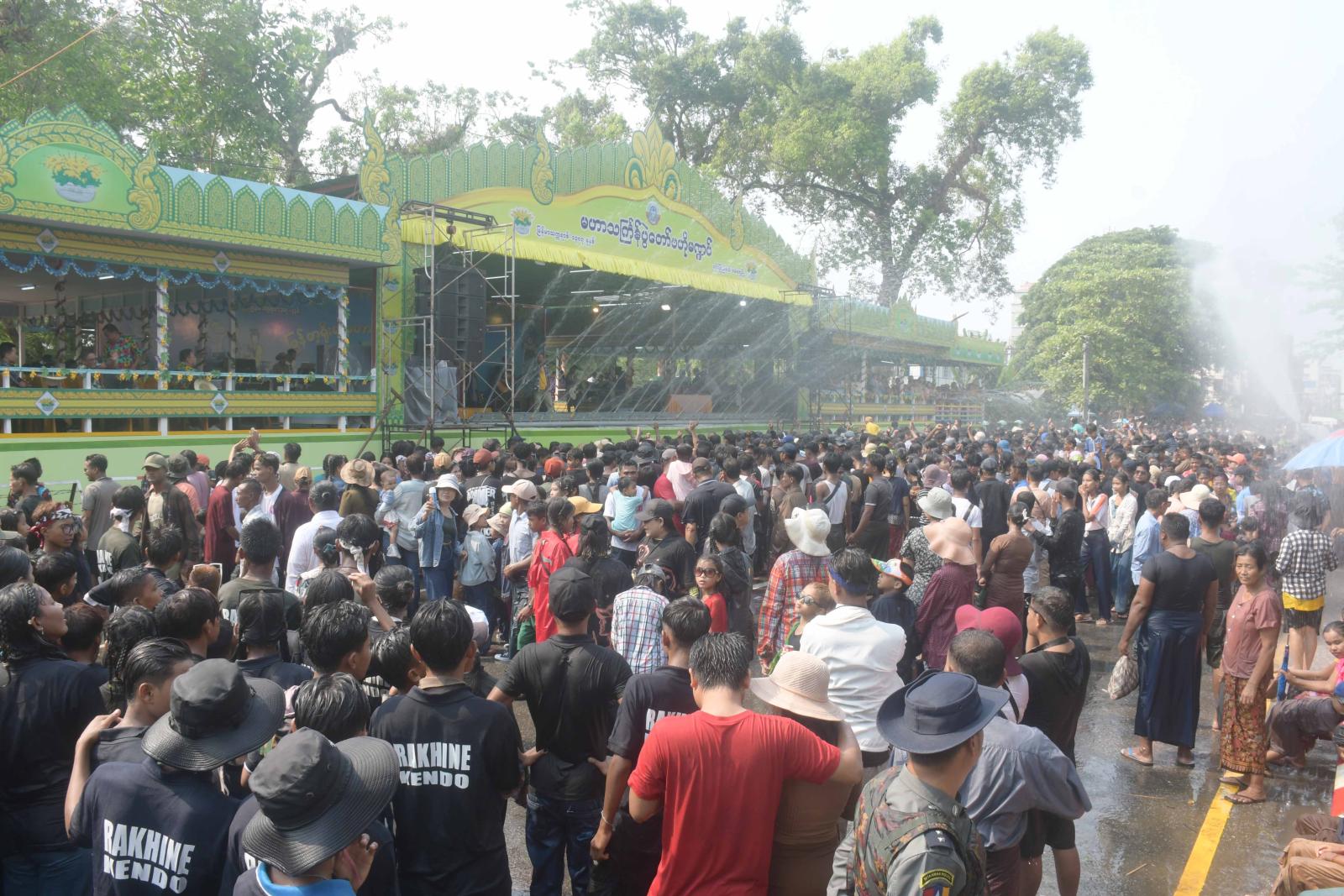 စစ်တွေမြို့၌ သင်္ကြန်အကြတ်နေ့၌ ရေကစားကြသူများ ရေပက်ခံထွက်ကြသူများဖြင့် အထူးစည်ကားလျက်ရှိကြောင်း သိရသည်။