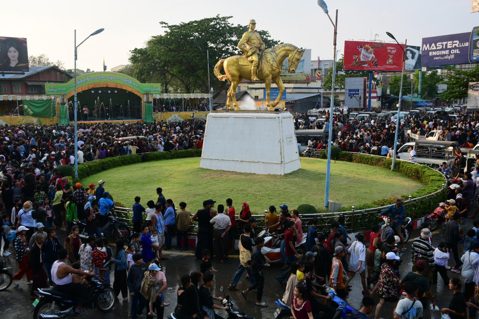 ၁၃၈၇ခုနှစ် မြန်မာ့ရိုးရာယဉ်ကျေးမှု မဟာသင်္ကြန်(အတက်နေ့) ယနေ့နံနက်ပိုင်းတွင် ပြည်မြို့ ဗဟိုမဏ္ဍပ်နှင့် လမ်းလျှောက်သင်္ကြန်ပွဲတော်၌ ရေကစားသူများ အထူးစည်ကားများပြား လျက်ရှိသည်။