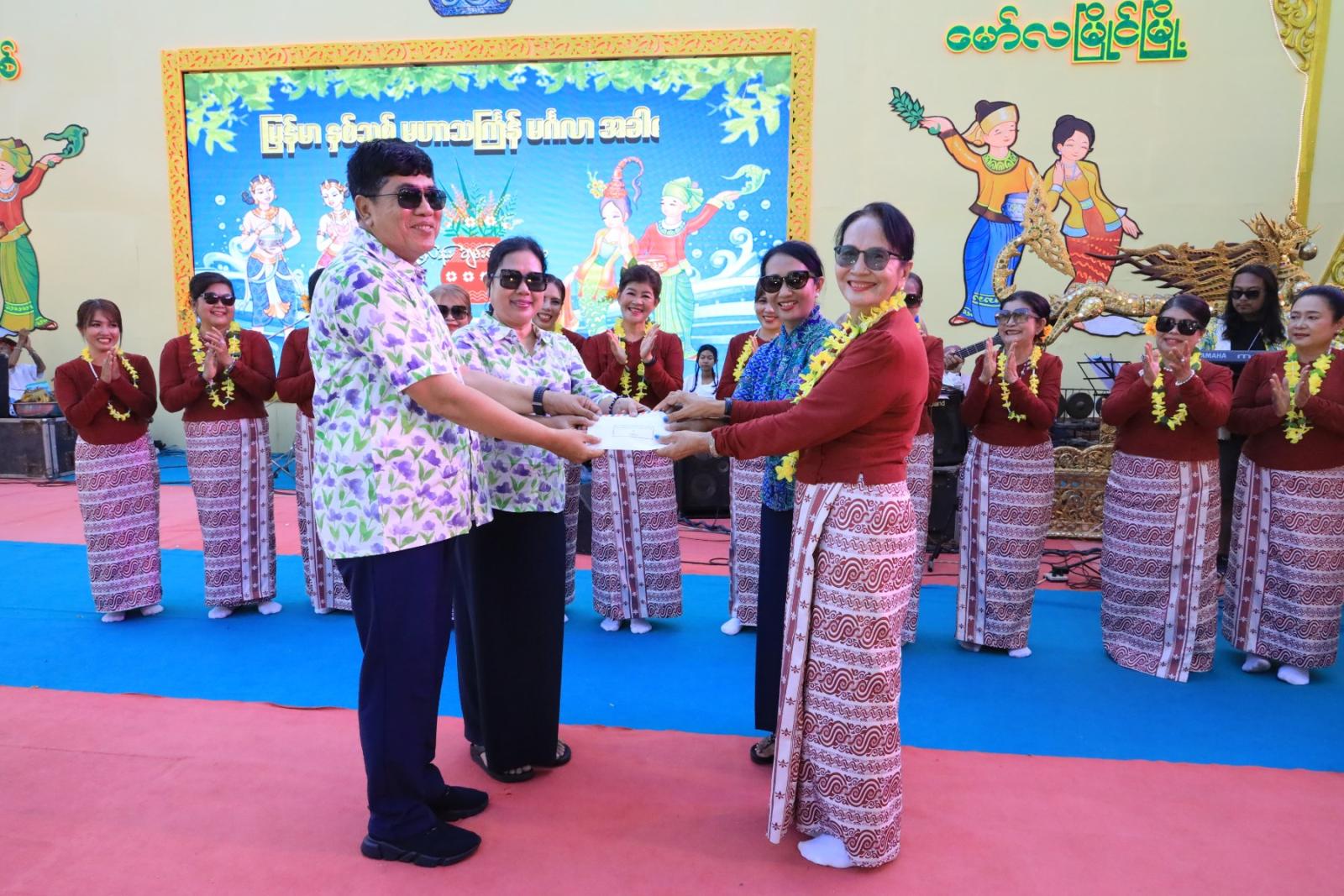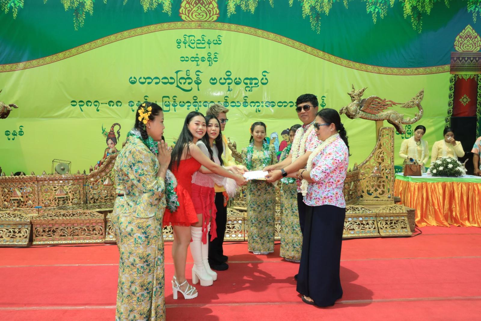ထိုနောက် မွန်ပြည်နယ်ဝန်ကြီးချုပ် ဦးအောင်ဝင်းသန်း၊ ပြည်နယ်အစိုးရအဖွဲ့ဝင်၀န်ကြီးများသည် ဧပြီ ၁၆ ရက်နေ့ နံနက်ပိုင်းတွင် သထုံမြို့နယ် ဗဟိုမဏ္ဍပ်တွင် မြန်မာရိုးရာမဟာသင်္ကြန်ပွဲတော် သင်္ကြန်အတက်နေ့ အေးချမ်းပျော်ရွှင်စွာနှင့် စည်ကားသိုက်မြိုက်စွာ ဆင်ယင်ကျင်းပနေမှု ပျော်ရွှင်စွာရေကစားခြင်း၊ သင်္ကြန်ယိမ်းအဖွဲ့များနှင့် တေးသံရှင်များမှ တေးသီချင်းများဖြင့် သီဆိုကပြယှဥ်ပြိုင်နေမှုအပေါ် ကြည့်ရှုအားပေး၍ ဂုဏ်ပြုဆုငွေများ ပေးအပ်ခဲ့ကြသည်။