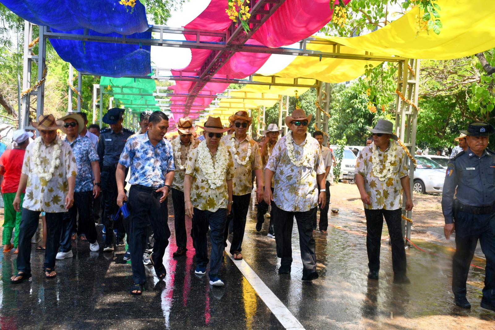 မြန်မာ့ရိုးရာယဉ်ကျေးမှု လမ်းလျှောက်မဟာသင်္ကြန်ပွဲတော်ကို အေးချမ်းကြည်နူးစွာဖြင့် တစ်ဦးနှင့်တစ်ဦး သပြေခက်ဖြင့်ရေပက်ခြင်းများ၊ ရေလောင်းခြင်းများ၊ စတုဒိသာအကျွေးအမွေးများနှင့်အတူ မြန်မာ့ရိုးရာသင်္ကြန်အစဉ်အလာနဲ့အညီ သပြေခက်ဖြင့် ရေပက်ကစားခဲ့ကြပြီး၊ မြန်မာ့ရိုးရာယဉ်ကျေးမှုလမ်းလျှောက်မဟာသင်္ကြန်ပွဲတော်တွင် သနပ်ခါး ယဉ်ကျေးမှုဓလေ့အား လူသားမျိုးနွယ်ကိုယ်စားပြု ဒြပ်မဲ့ယဉ်ကျေးမှုအမွေအနှစ် စာရင်းဝင်အဖြစ် ပါဝင်နိုင်ရန်ကြိုးပမ်းဆောင်ရွက်မှုများကို ဂုဏ်ပြုသောအားဖြင့် လာရောက်ရေကစား ကြသူများအား မြန်မာ့ရိုးရာသနပ်ခါးလိမ်းခြယ်နိုင်ရန် စီစဉ်ဆောင်ရွက်ပေးထားပြီး မြန်မာ့ရိုးရာ ယဉ်ကျေးမှုလမ်းလျှောက်သင်္ကြန်၌ ဝန်ကြီးဌာနမဏ္ဍပ်များတွင် စတုဒိသာအဖြစ် မြန်မာရိုးရာ မုန့်များ၊ မုန့်လုံးရေပေါ်၊ မုန့်တီများကို ကျွေးမွေးခဲ့ကြောင်း သိရသည်။