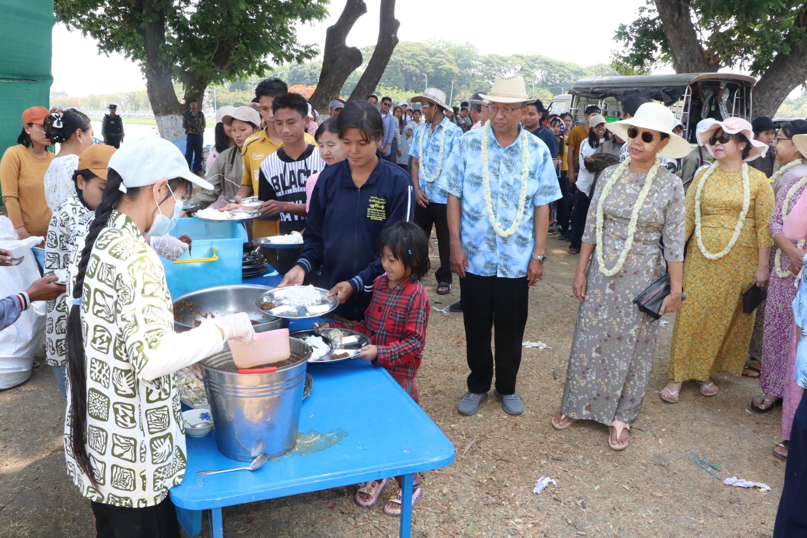 ယင်းနောက် တိုင်းဒေသကြီး ဝန်ကြီးချုပ်နှင့် တာဝန်ရှိသူများက အရှေ့ဘက်ကန် သာယာကန်ရှိ ပြည်ထောင်စုရင်ပြင်၌ လမ်းလျှောက်သင်္ကြန်ပွဲတော်သို့ လာရောက်ပါဝင်ဆင်နွှဲကြသည့် မြို့နေပြည်သူများအား ထမင်းနှင့်ဟင်းများ စတုဒိသာကျွေးမွေးနေမှုများ နှင့် ဌာနဆိုင်ရာမဏ္ဍပ်များအလိုက် မုန့်လက်ဆောင်၊ ဂျူံကျို၊ ကြာဆံဟင်း၊ ရွှေရင်အေးများ စတုဒီသာကျွေးနေမှုများအား လိုက်လံကြည့်ခဲ့ကြပြီး မြို့နေပြည်သူများအား ရင်းရင်းနှီးနှီး လိုက်လံနှုတ်ဆက်သည်။