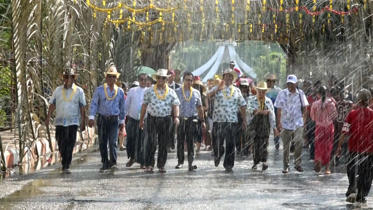 ဦးစွာ တိုင်းဒေသကြီးကရင်တိုင်းရင်းသားလူမျိုးရေးရာဝန်ကြီးနှင့် ရခိုင်တိုင်းရင်းသားလူမျိုးရေးရာဝန်ကြီး နှင့် ဇနီးတို့ကို ရန်ကုန်မြို့ ပြည်ထောင်စု တိုင်းရင်း သားကျေးရွာမှ တာဝန်ရှိသူများက ကြိုဆိုခဲ့ကြသည်။
