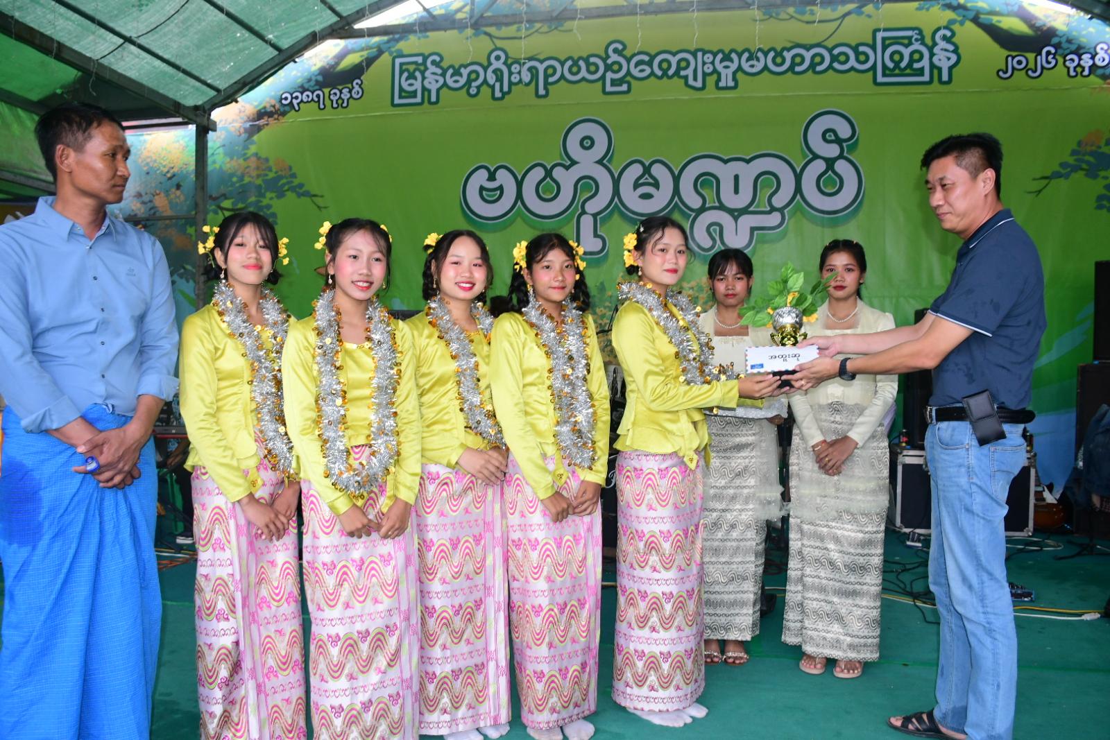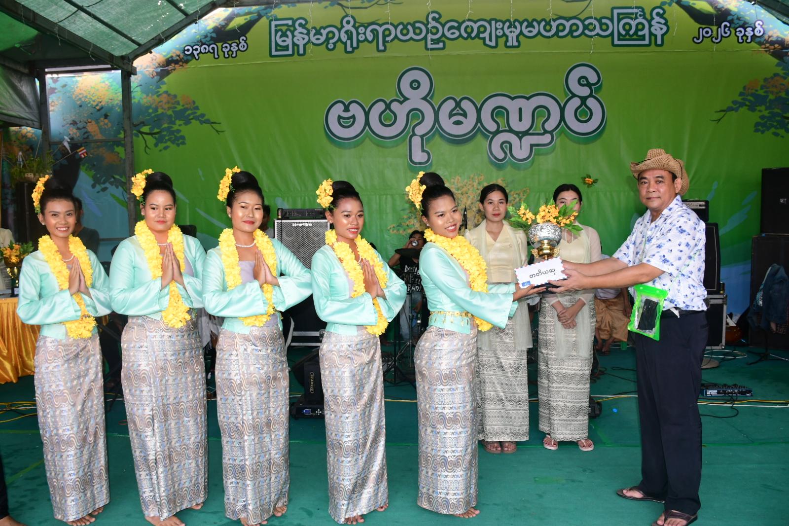 ထို့နောက် ပြည်ခရိုင်စီမံခန့်ခွဲရေးနှင့်အုပ်ချုပ်ရေးကော်မတီဥက္ကဋ္ဌ နှင့် အဖွဲ့ဝင်များ၊ ပြည်မြို့နယ်စီမံခန့်ခွဲရေးနှင့်အုပ်ချုပ်ရေးကော်မတီဥက္ကဋ္ဌ ဦးကျော်ဇင်ဦးနှင့်အဖွဲ့ဝင်များ၊ ခရိုင်နှင့်မြို့နယ်အမျိုးသမီးရေးရာအဖွဲ့ဥက္ကဋ္ဌများနှင့်အဖွဲ့ဝင်များက ဒိုင်အဖွဲ့အား ဂုဏ်ပြုလက်ဆောင်များနှင့် ပထမဆုရ ဆံတော်ရပ်ကွက်ယိမ်းအဖွဲ့၊ ဒုတိယဆုရ ရွှေတံခါးရပ်ကွက်ယိမ်းအဖွဲ့၊ တတိယဆုရ ရွာဘဲရပ်ကွက်ယိမ်းအဖွဲ့နှင့် အထူးဆုရယိမ်းအဖွဲ့များအား ဂုဏ်ပြုဆုငွေများ ပေးအပ်ချီးမြှင့်သည်။