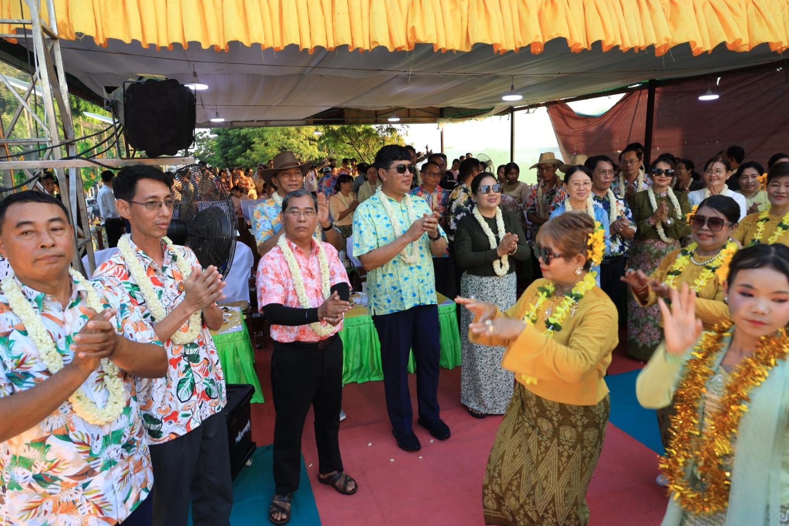 ရှေးဦးစွာ ပြည်နယ်ဝန်ကြီးချုပ်နှင့် တာဝန်ရှိသူများက ဗဟိုမဏ္ဍပ်တွင် ပျော်ရွှင်စွာရေကစားခြင်း၊ သင်္ကြန်ယိမ်းအဖွဲ့များနှင့် တေးသံရှင်များမှ တေးသီချင်းများဖြင့် သီဆိုကပြနေမှုအပေါ် ကြည့်ရှုအားပေးခဲ့ကြသည်။