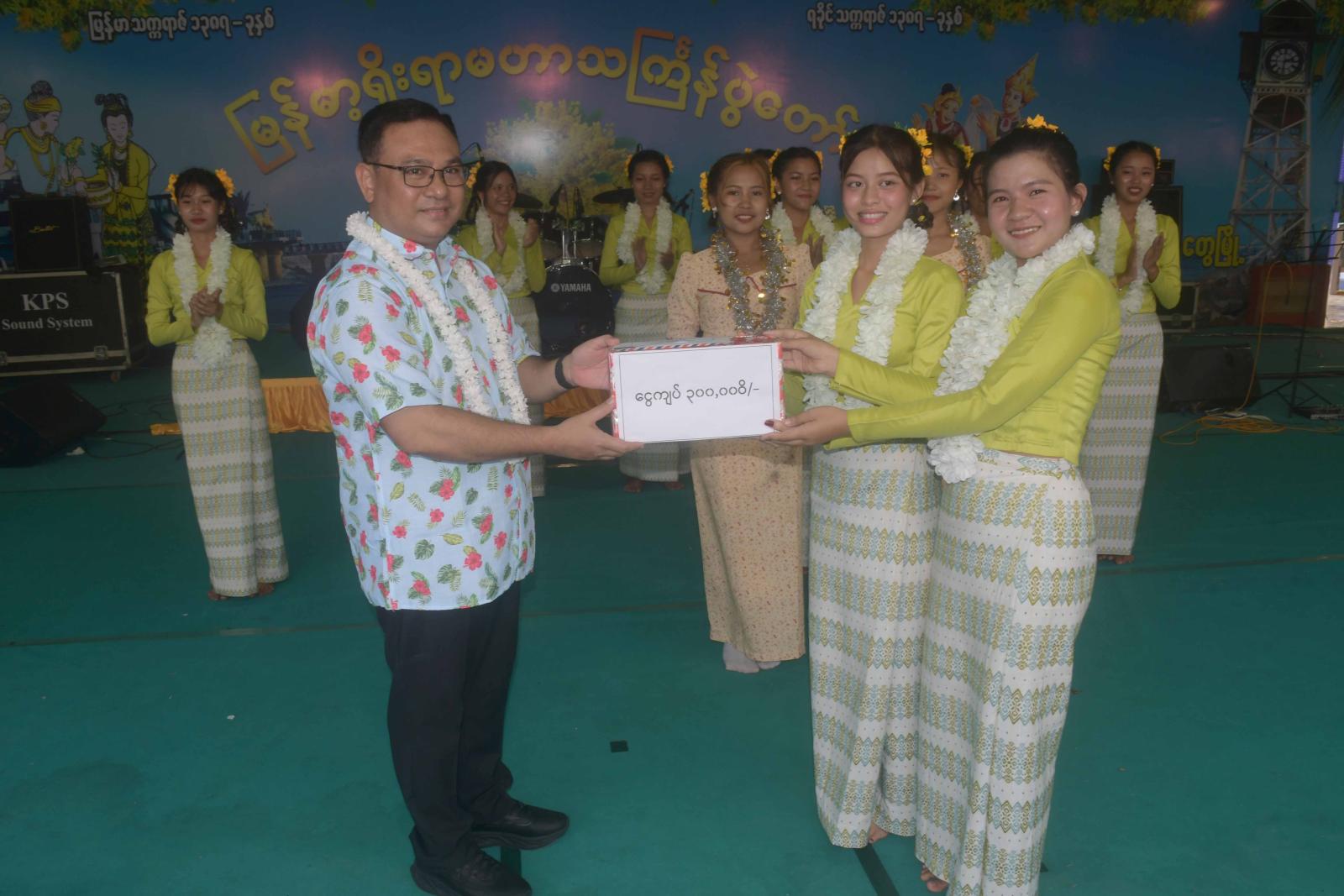 ညနေပိုင်းတွင် ရခိုင်ပြည်နယ်ဝန်ကြီးချုပ်နှင့်ဇနီး၊ ရခိုင်ပြည်နယ်လွှတ်တော်ဥက္ကဋ္ဌ၊ ပြည်နယ်အစိုးရ အဖွဲ့ဝင်များသည် ဗဟိုမဏ္ဍပ်သို့ သွားရောက်ပြီး သင်္ကြန်ယိမ်းအကအဖွဲ့များ၊ ရခိုင်အဆိုတော်များ၊ တေးသံရှင်များ၏ ကပြဖျော်ဖြေနေမှုကို ကြည့်ရှုအားပေးကြသည်။ ယင်းနောက် ပြည်နယ်ဝန်ကြီးချုပ်နှင့်ဇနီး၊ ပြည်နယ်လွှတ်တော်ဥက္ကဋ္ဌနှင့် ပြည်နယ်အစိုးရ အဖွဲ့ဝင်များက ကပြဖျော်ဖြေပေးခဲ့ကြသည့် သင်္ကြန်ယိမ်းအကအဖွဲ့များအား ဂုဏ်ပြုချီးမြှင့်ငွေများ ပေးအပ်ခဲ့ကြသည်။