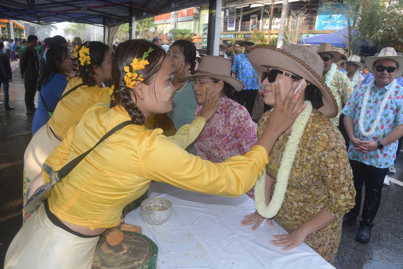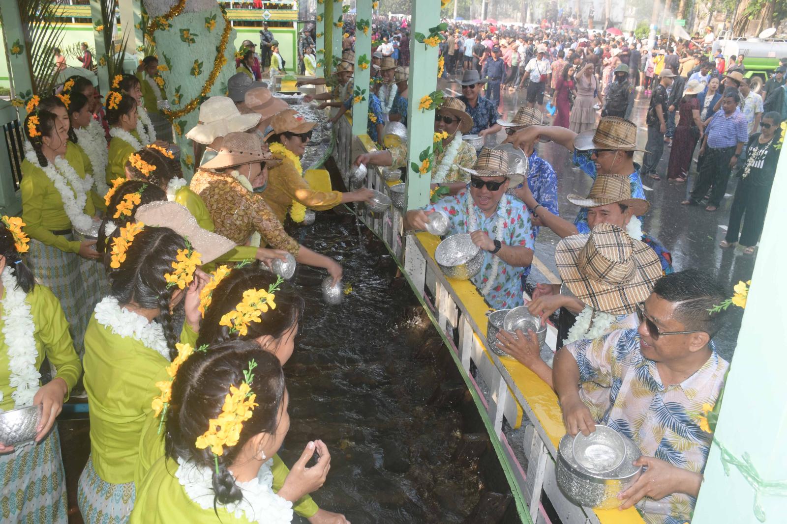 ထို့ပြင် ပြည်နယ်ဝန်ကြီးချုပ်နှင့်အဖွဲ့သည် လမ်းမကြီးရှိ မြန်မာ့ရိုးရာသနပ်ခါး ယဉ်ကျေးမှုမဏ္ဍပ်၊ စတုဒီသာမဏ္ဍပ်နှင့် လမ်းလျှောက်သင်္ကြန်မဏ္ဍပ်များသို့ သွားရောက်ကြပြီး ပြည်သူများနှင့်အတူ သင်္ကြန်ပွဲတော်ကို ပျော်ပျော်ရွှင်ရွှင် ပါဝင်ဆင်နွှဲကြသည်။ အလားတူ ပြည်နယ်ဝန်ကြီးချုပ်နှင့်ဇနီး၊ ပြည်နယ်လွှတ်တော်ဥက္ကဋ္ဌနှင့် တာဝန်ရှိသူများသည် ယိမ်းအကအဖွဲ့များနှင့်အတူ စစ်တွေမြို့၊ ဗဟိုမဏ္ဍပ်အား မန်းတောင်ရိပ်ခို သီချင်းဖြင့် ကပြသီဆိုဖျော်ဖြေကာ ပိတ်သိမ်းခဲ့ကြသည်။
