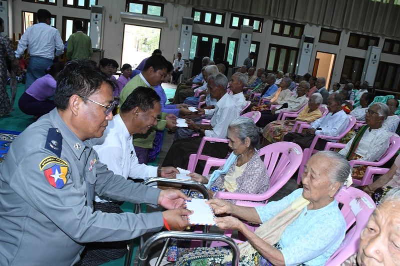 ဦးစွာ အခမ်းအနားသို့တက်ရောက်လာသည့် အမျိုးသားလွှတ်တော်ကိုယ်စားလှယ် ဦးခင်မောင်ဝင်း၊ မြို့နယ် စီမံခန့်ခွဲရေးနှင့်အုပ်ချုပ်ရေးကော်မတီဥက္ကဋ္ဌ ဦးထိုက်ထိုက်ဇော်နှင့် မြို့နယ်အဆင့်ဌာနဆိုင်ရာများ၊ မြို့နယ်အမျိုးသမီးရေးရာအဖွဲ့ဥက္ကဋ္ဌ ဒေါ်နှင်းယုသင်းနှင့်အဖွဲ့ဝင်များ၊ ရပ်ကွက်အုပ်ချုပ်ရေးမှူးများနှင့် လူမှုရေးအသင်းအဖွဲ့ဝင်များမှ ဘိုးဘွားများအား ပူဇော်ကန့်တော့ချိုးဖြင့် ပူဇော်ကန်တော့ခဲ့ကြပြီး ဘိုးဘွား ၂၇၁ ဦးအား တစ်ဦးလျင် ငွေကျပ် ၅၀,၀၀၀ နှုန်းဖြင့် လက်ဝယ်အရောက် ပူးဇော်ကန်တော့ခဲ့ရာ မင်းရပ် ရပ်ကွက်မှ ကန်တော့ခံအဘိုး ဦးလှက ဆုတောင်းမေတ္တစကားများ ပြန်လည်ချီးမြှင့်ခဲ့ကြောင်း သိရသည်။