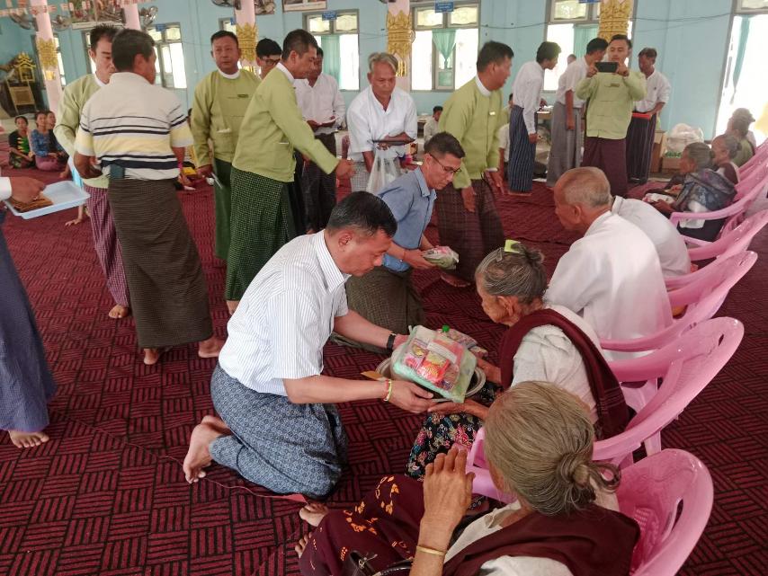 ဆက်လက်ပြီး သက်ကြီးဘိုးဘွားများအား ပူဇော်ကန်တော့၍ အာဟာရနှင့် ဆေးဝါးပစ္စည်းများ၊ အလှူငွေများ လှူဒါန်းခဲ့ကြပြီး၊ အဘိုးအဘွားများနှင့် တရားနာပရိသတ်တို့အား အချိုရည်နှင့် ရွှေရင်အေးများဖြင့် ကျွေးမွေးဧည့်ခံခဲ့ကြောင်း သိရသည်။