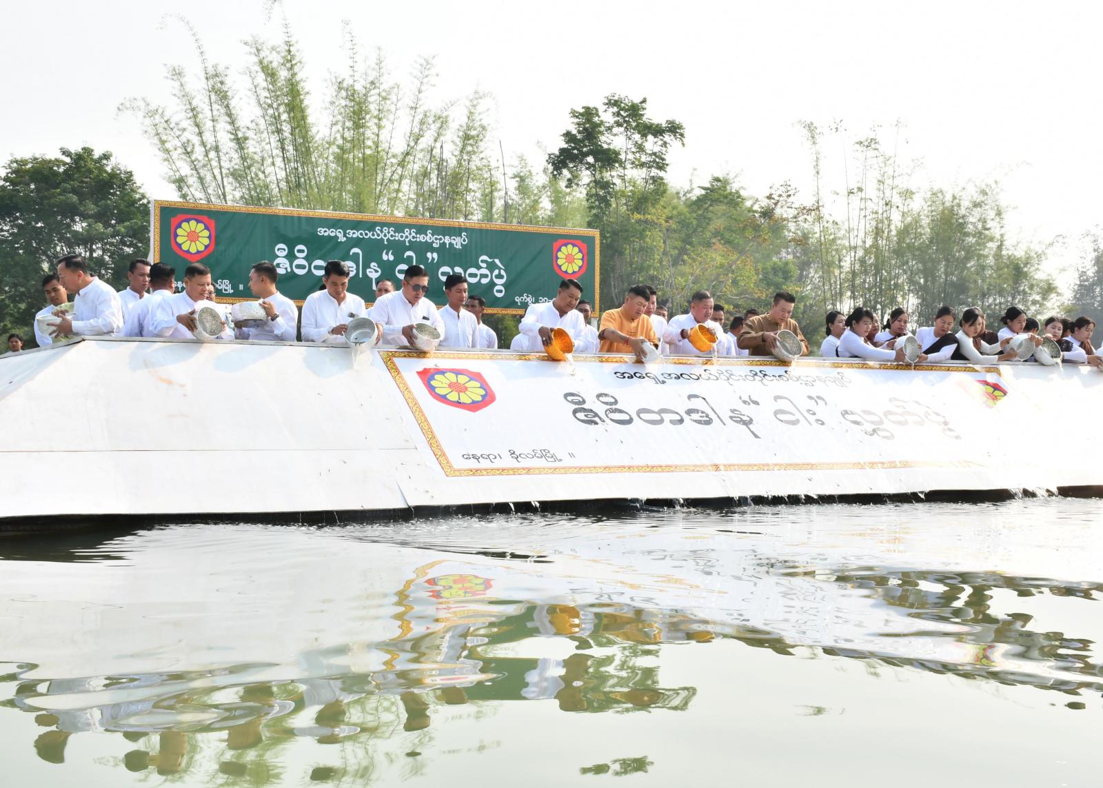 ဦးစွာ အရှေ့အလယ်ပိုင်းတိုင်းစစ်ဌာနချုပ်၊ ခေတ္တတိုင်းမှူး၊ ဗိုလ်မှူးချုပ် အောင်ကိုဝင်းနှင့်ဇနီးတို့က ဦးဆောင်၍ ရွှေဝါ ငါးကြင်း စုစုပေါင်း ငါးအကောင်ရေ ၁၀၀၀၀ ကို တုန်ဟုန်းရေကန်အတွင်းသို့ ဇီဝိတဒါနအဖြစ် ကုသိုလ်ပြုလွှတ်ပေးသည်။