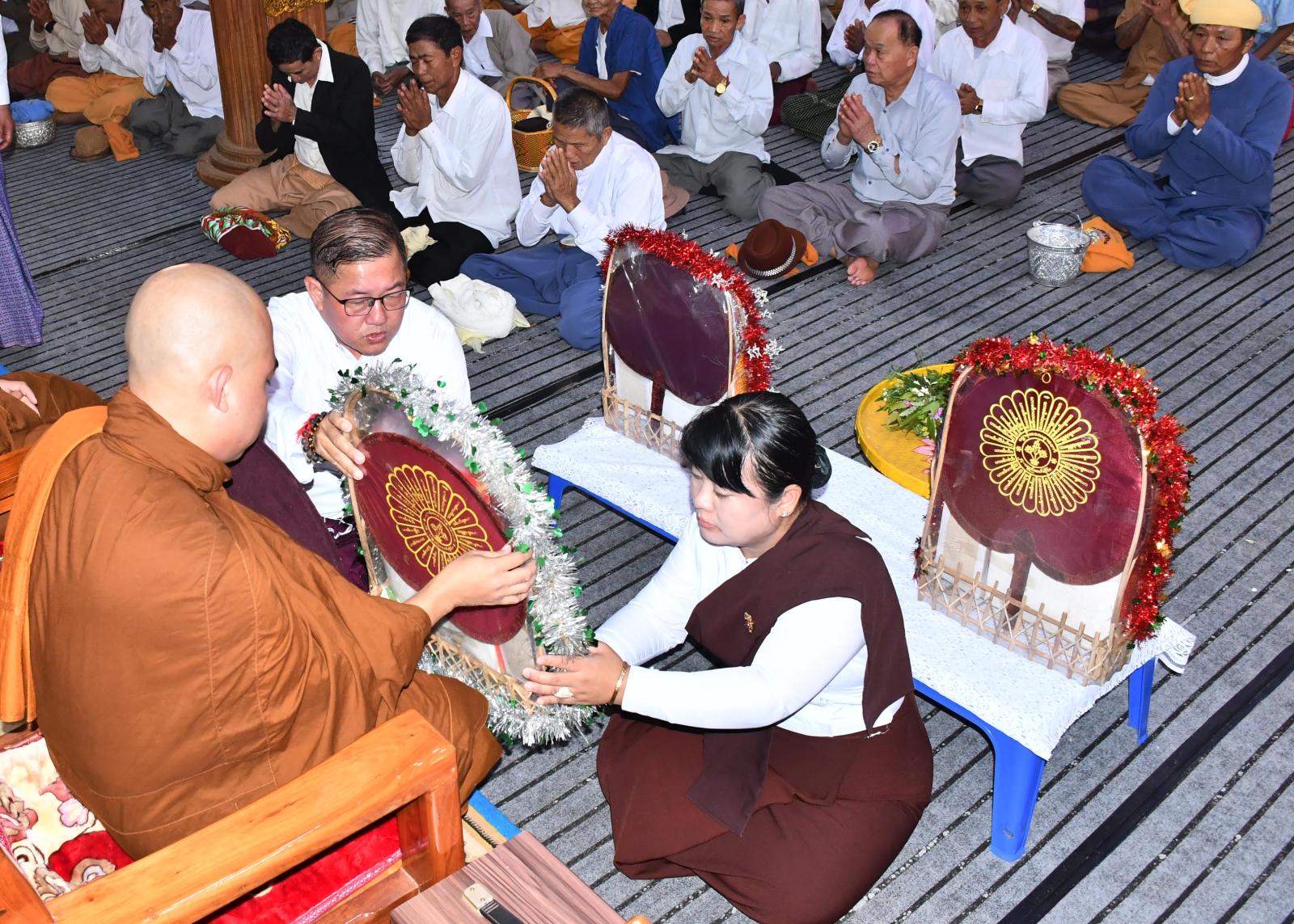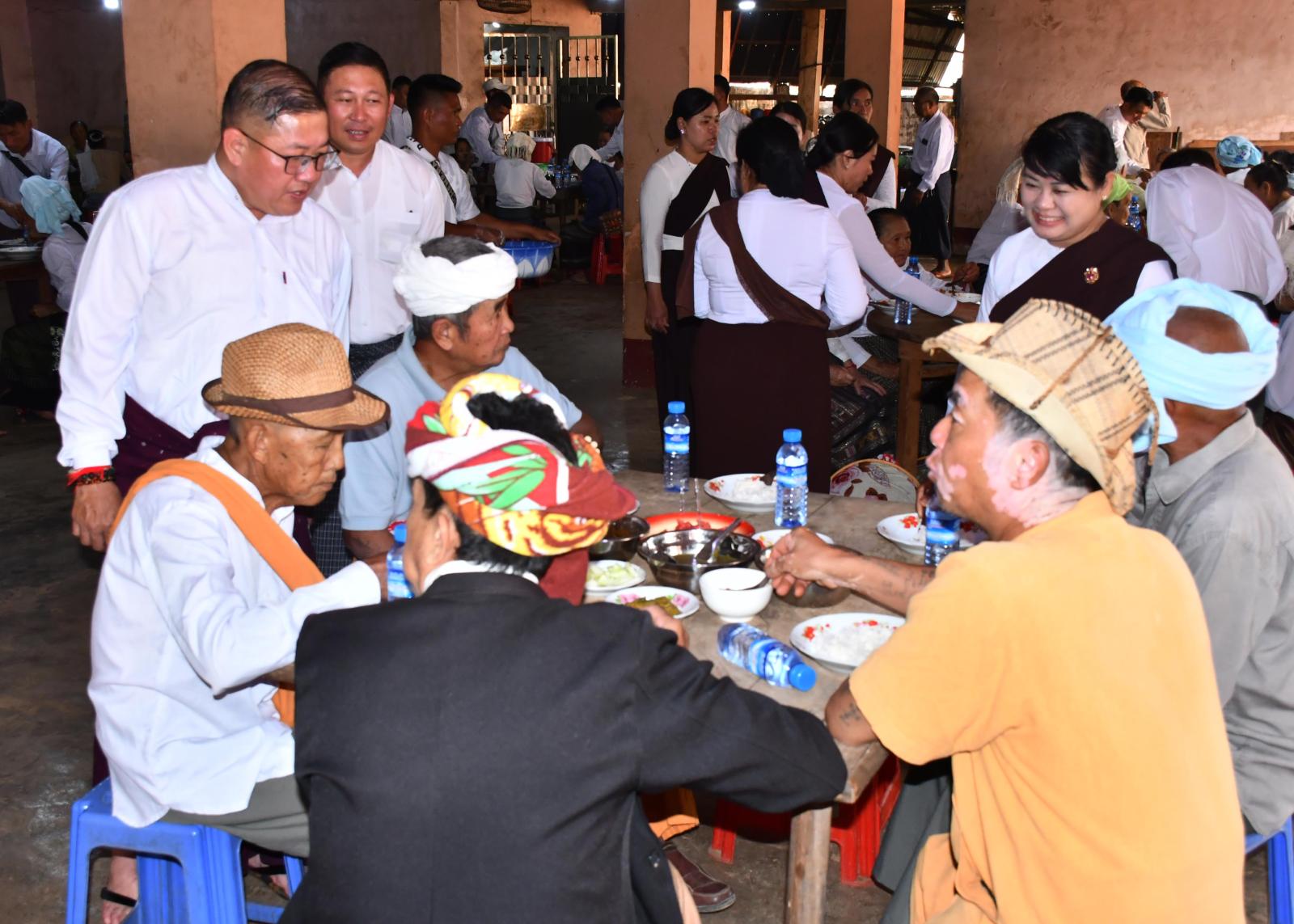 ဆက်လက်၍ ခေတ္တတိုင်းမှူးနှင့် တာဝန်ရှိသူများသည် ခိုလမ်မြို့၊ သီရိမင်္ဂလာကျောင်းတိုက် ကျောင်းထိုင် ဆရာတော် ဦးပညာသီရိ အမှူးပြုသော သံဃာတော်များအားဖူးမြော်ကာ ငါးပါးသီလနှင့် ပရိတ်တရားတော်များ ခံယူဆောက်တည်ကြပြီး ဆရာတော်၊ သံဃာတော်များအား လှူဖွယ်ပစ္စည်းများ၊ ဝတ္ထုငွေများ ဆက်ကပ်လှူဒါန်းခြင်းနှင့် ခိုလမ်မြို့ရှိ အသက် (၇၅)နှစ် အထက် သက်ကြီးဘိုးဘွား ၁၃၄ ဦးတို့အား ပူဇော်ကန်တော့ကြကာ သက်ကြီး ဘိုးဘွားများအတွက် အာဟာရပြည့် စားသောက်ဖွယ်ရာများ၊ အလှူငွေများကို ပေးအပ်လှူဒါန်းသည်။