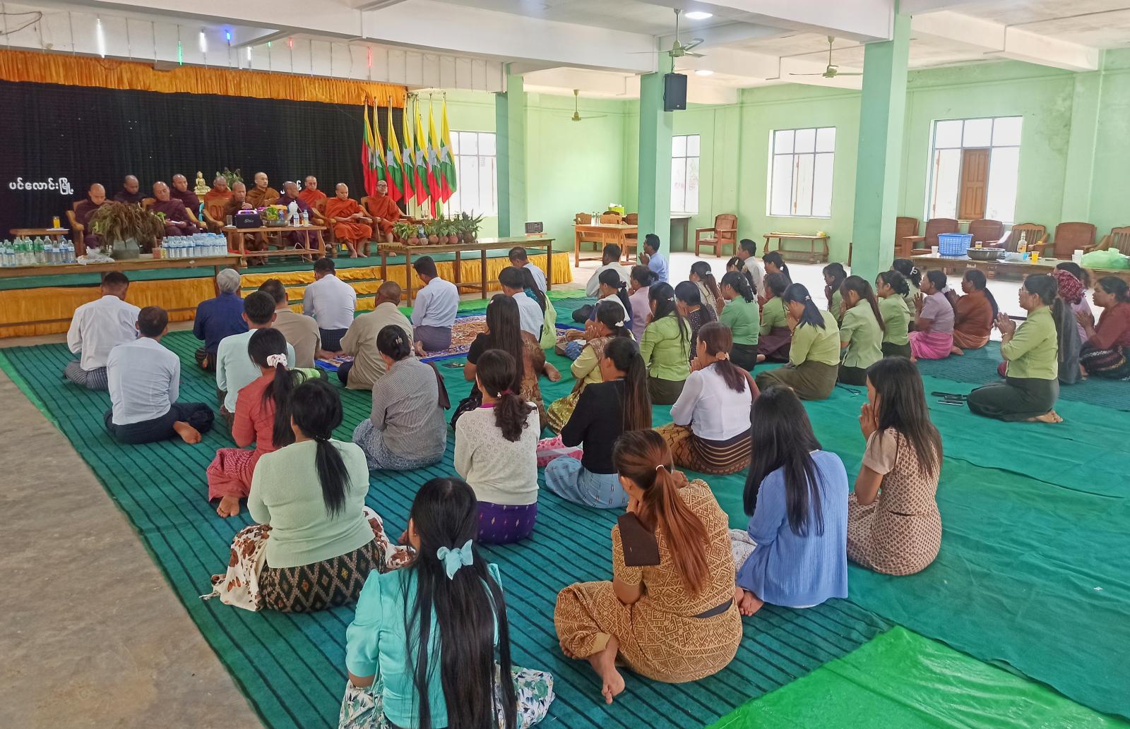 ထို့နောက် မွန်းလွဲ ၃ နာရီက ဘက်စုံသုံးခန်းမတွင် မြန်မာနှစ်ဆန်း တစ်ရက်နေ့ အန္တရာယ်ကင်း ပရိတ်တရားတော် ရွတ်ဖတ်ပူဇော်ခြင်း ဆက်လက်ကျင်းပရာ ဌာနဆိုင်ရာတာဝန်ရှိသူများနှင့် ပြည်သူများက ဩကာသကန်တော့ချိုးဖြင့် ဘုရားရှိခိုးကန်တော့ကြပြီး နမ့်ဟူးပရိယတ္တိစာသင်တိုက် ဆရာတော် ဘဒ္ဒန္တလာဘသာမိထံ ငါးပါးသီလခံယူဆောက်တည်ကြကြောင်းသိရသည်။