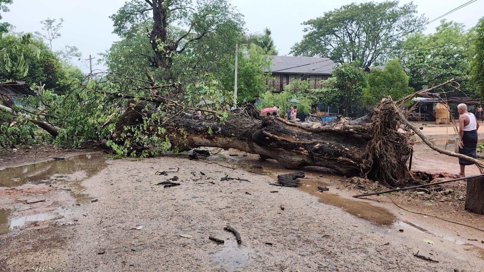 အဆိုပါ လေပြင်းတိုက်ခတ်မှုကြောင့် သစ်ပင်များ အမြစ်ပွလဲခြင်းနှင့် လူနေအိမ်များ၊ အဆောက်အဦများ အမိုးလန်ပျက်စီး၊ ပြိုကျပျက်စီးမှုများဖြစ်ပေါ်ရာနေရာများတွင် မြို့နယ်မီးသတ်တပ်ဖွဲ့ဝင်များက ကူညီကယ်ဆယ်ရေးလုပ်ငန်းများ ဆောင်ရွက်ခြင်းတို့ကို မြို့နယ်စီမံခန့်ခွဲရေးနှင့်အုပ်ချုပ်ရေးကော်မတီဥက္ကဋ္ဌနှင့်အဖွဲ့ဝင်များ ကွင်းဆင်းစစ်ဆေးဆောင်ရွက်လျက်ရှိပြီး အဆိုပါလေဘေးသင့်အိမ်ထောင်စုများအား သက်ဆိုင်ရာဆွေမျိုးများအိမ်တွင် ယာယီနေထိုင်နိုင်ရေး စီစဉ်ဆောင်ရွက်ထားရှိကြောင်းနှင့် ပျက်စီးဆုံးရှုံးမှု အသေးစိတ်စာရင်းအား စိစစ်ဆောင်ရွက်လျက်ရှိကြာင်း သိရသည်။
