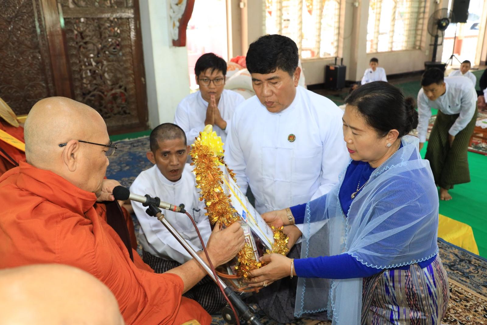ထို့နောက် ပြည်နယ်ဝန်ကြီးချုပ်က သာသနာရေးဆိုင်ရာ ကိစ္စရပ်များအား လျှောက်ထားခဲ့ပြီး ဆရာတော်သံဃာတော် အရှင်သူမြတ်များထံ ဆန်၊ ဆီ၊ ဆား၊ ကြက်သွန်နှင့် လှူဖွယ်ဝတ္ထုပစ္စည်းများအား ပြည်နယ်ဝန်ကြီးချုပ်နှင့် ဇနီး၊ ပြည်နယ်လွှတ်တော် ဥက္ကဋ္ဌနှင့် ဒုတိယ ဥက္ကဋ္ဌ၊ ပြည်နယ်တရားလွှတ်တော်တရားသူကြီးချုပ်နှင့် ပြည်နယ်အစိုးရအဖွဲ့ဝင်ဝန်ကြီးများက ဆက်ကပ်လှူဒါန်းခဲ့ကြကြောင်း သိရသည်။