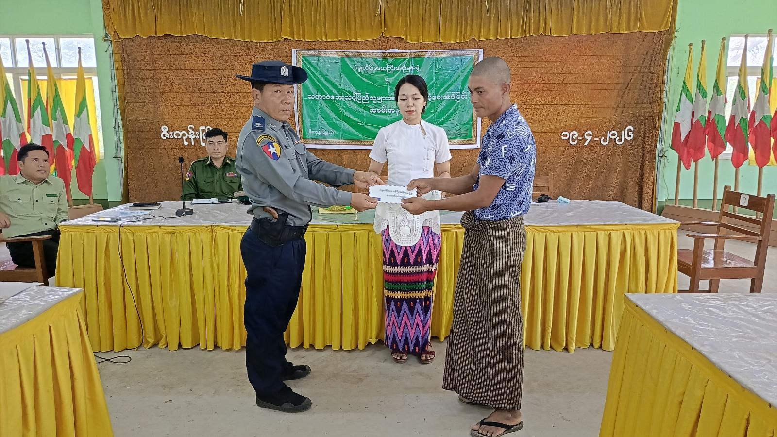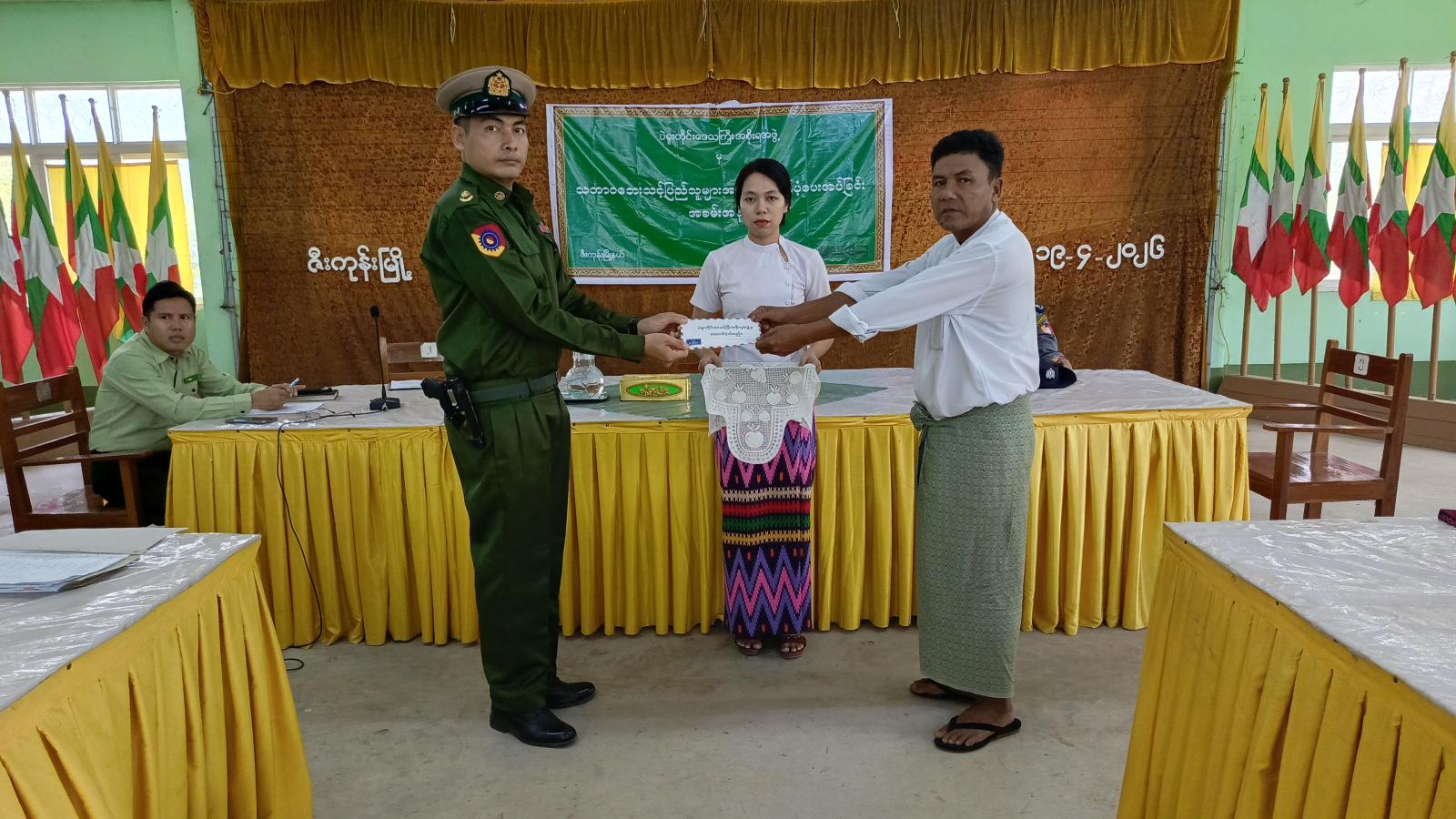 ရှေးဦးစွာ မြို့နယ်စီမံခန့်ခွဲရေးနှင့်အုပ်ချုပ်ရေးကော်မတီ အဖွဲ့ဝင် (၁) ဗိုလ်မှူးကျော်လင်းသူက အဖွင့်အမှာစကားပြောကြားပြီး၊ ဒုတိယမြို့နယ်အုပ်ချုပ်ရေးမှူး ဦးညီညီလတ်က လေဘေးသင့်အိမ်ထောင်စုများအား ထောက်ပံ့ငွေများပေးအပ်ခြင်းနှင့်ပတ်သက်၍ ရှင်းလင်းပြောကြားခဲ့သည်။ ထို့နောက် မြို့နယ်စီမံခန့်ခွဲရေးနှင့်အုပ်ချုပ်ရေးကော်မတီ အဖွဲ့ဝင် (၁) ဗိုလ်မှူးကျော်လင်းသူနှင့် တာဝန်ရှိသူများက ပဲခူးတိုင်းဒေသကြီးအစိုးရအဖွဲ့မှ ထောက်ပံ့သော ပြိုလဲနေအိမ်တစ်လုံးလျှင် နှစ်သိန်းကျပ်ဖြင့် နေအိမ် (၁၀) လုံးအတွက်ကိုလည်းကောင်း၊ အမိုးလန်ပျက်ဆီးနေအိမ်တစ်လုံးလျှင် ငါးသောင်းကျပ်နှုန်းဖြင့် နေအိမ် (၃၇၅) လုံးအတွက်ကိုလည်းကောင်း၊ စုစုပေါင်း (၂၀၇ သိန်း၊ ငါးသောင်း) ကျပ်ကို လေဘေးသင့်အိမ်ထောင်စုဝင်များထံ လက်ဝယ်အရောက် ထောက်ပံ့ပေးအပ်ခဲ့ကြောင်း သိရသည်။