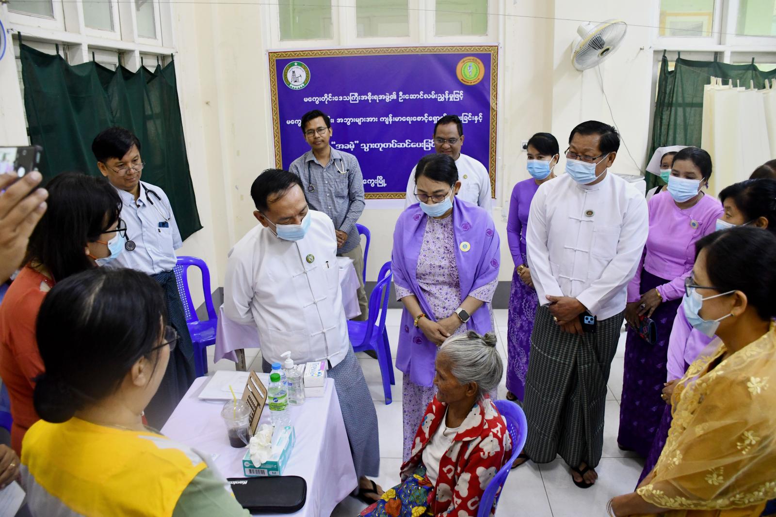 မကွေးတိုင်းဒေသကြီးအတွင်း ယခုကဲ့သို့ကျန်းမာရေးစောင့်ရှောက်မှုလုပ်ငန်းများ ဆောင်ရွက်ပေးခြင်းဖြင့် မိမိတို့ဒေသရှိ ဘိုးဘွားများအနေဖြင့် အမြင်အာရုံပြန်လည်ကောင်းမွန်လာပြီး အစားအစာများကို ကောင်းမွန်စွာစားသောက်နိုင်ခြင်းကြောင့် ကျန်းမာကြံ့ခိုင်သော လူမှုဘဝကို ပိုင်ဆိုင်နိုင်စေရန်အတွက် အခမဲ့ဆေးကုသပေးခြင်းများ ဆောင်ရွက်ပေးလျက်ရှိပြီး၊ အခမဲ့ဆေးကုသမှု အဖြစ်သွားနှင့် ခံတွင်းအထူးကုဆရာဝန်ကြီးများ၊ မျက်စိအထူးကု ဆရာဝန်ကြီးများနှင့် အထွေထွေရောဂါကုဆရာဝန်ကြီးများက ဦးဆောင်ကာ လိုအပ်သည့် ကျန်းမာရေးစောင့်ရှောက်မှုကို ဆောင်ရွက်ပေးလျက်ရှိကြောင်း သိရသည်။