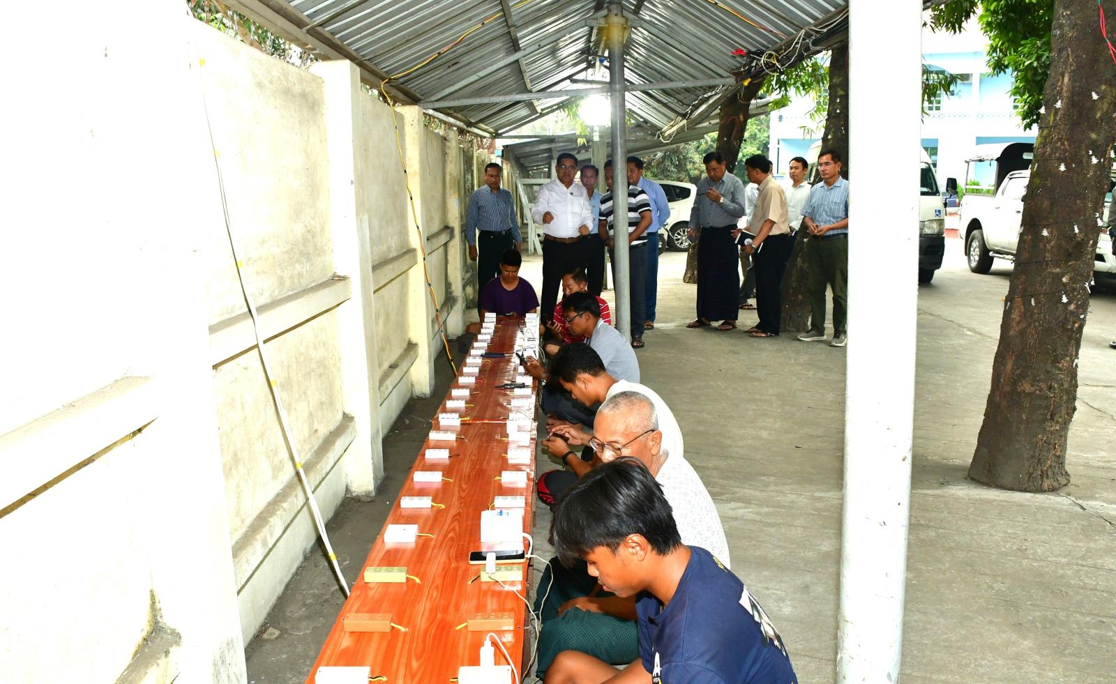 ထိုသို့ ပြည်သူများ ပြန်လည်အားသွင်းအသုံးပြုနိုင်သော လျှပ်စစ်ဆိုင်ရာပစ္စည်းများ အားသွင်းနိုင်ရေး စီစဉ်ဆောင်ရွက်ပေးနေမှုအခြေအနေများကို ပြည်နယ်ဝန်ကြီးချုပ် ဦးခက်ထိန်နန်သည် ပြည်နယ်အစိုးရအဖွဲ့ဝင် ဝန်ကြီးများ၊ သက်ဆိုင်ရာ ပြည်နယ်အဆင့်ဌာနဆိုင်ရာ တာဝန်ရှိသူများနှင့်အတူ မြစ်ကြီးနားမြို့ရှိ ရန်ကြီးအောင်ရပ်ကွက်၊ မီးစက်ဝင်းအတွင်း လျှပ်စစ်ဌာနမှ ပြည်သူများ၏ နေ့စဉ် လျှပ်စစ်မီးဖြင့် အသုံးပြုသည့် EV ဆိုင်ကယ်၊ ဖုန်း၊ Power Bank များ၊ အားသွင်း မီးသီး/မီးလုံးများ အားဖြည့်သွင်းနိုင်ရေး ပလပ်ခုံများပြုလုပ်ထားရှိမှု အခြေအနေများကိုလည်းကောင်း၊ မြို့သစ်ရပ်ကွက်ရှိ ဘူးဂါးလျှပ်စစ်ဓာတ်အားဖြန့်ဖြူးရေးလုပ်ငန်းပိုင် အရေးပေါ်မီးပျက်တိုင်ကြားရန် ဌာန၌ ရပ်ကွက်နေပြည်သူများ လျှပ်စစ်မီးအားသွင်းသုံးစွဲနိုင်ရေး မီးစက်ဖြင့် အားသွင်းပလပ်ခုံများပြုလုပ်၍ ဝန်ဆောင်မှုပေးနေမှုကိုလည်းကောင်း၊ အလားတူ ပြည်နယ်လျှပ်စစ်အင်ဂျင်နီယာရုံးဝင်းအတွင်း၌လည်း ထိုသို့ဆောင်ရွက်ပေးလျက်ရှိရာ ပြည်သူများ ဝန်ဆောင်မှုရယူ၍ လျှပ်စစ်ဓာတ်အား ဖြည့်သွင်းနေမှုအခြေအနေများကိုလည်းကောင်း လှည့်လည်ကြည့်ရှုစစ်ဆေးခဲ့ကြသည်။