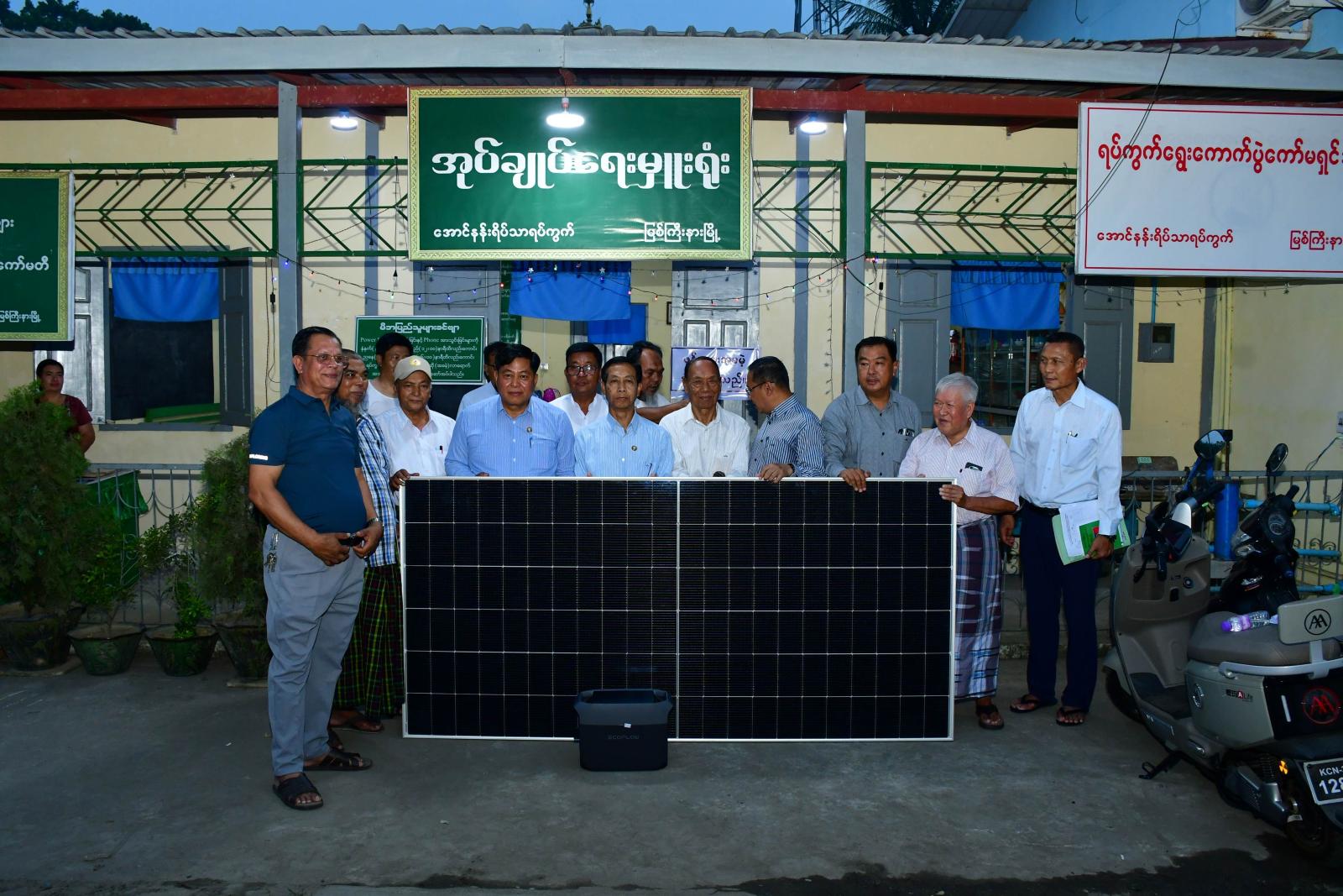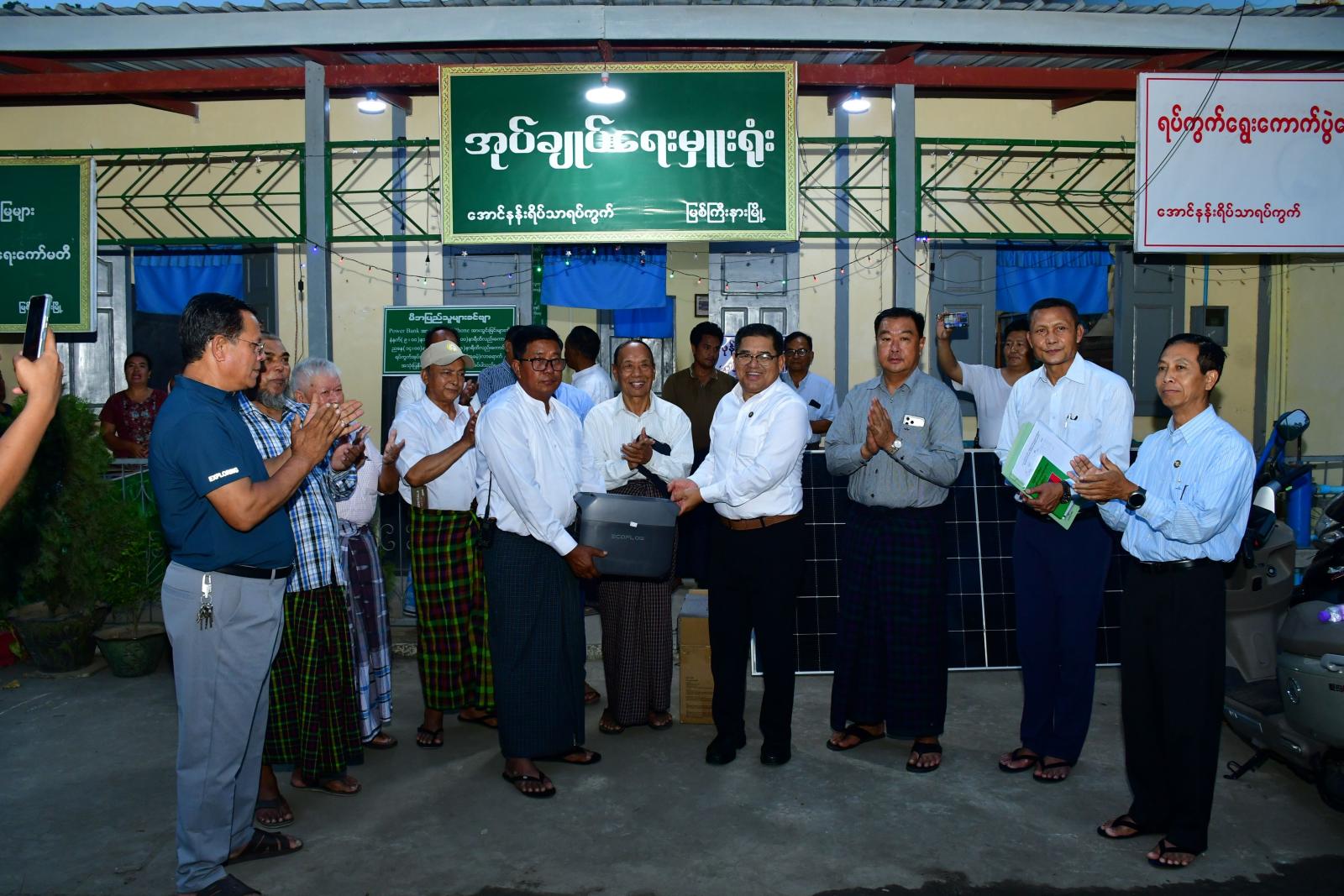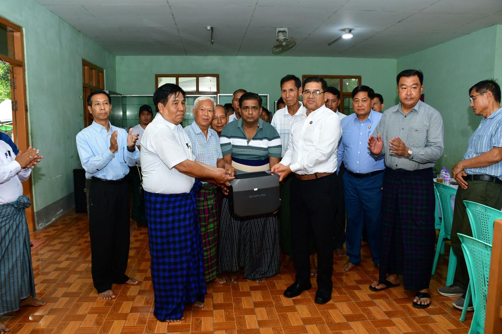 ထို့နောက် ပြည်နယ်ဝန်ကြီးချုပ်နှင့် ပြည်နယ်ဝန်ကြီးများက ရပ်ကွက်အုပ်ချုပ်ရေးမှူးရုံးများအတွက် ၈ ပေ×၄ပေ ဆိုလာပြားနှင့် 1800W ရှိ Power Station တစ်စုံစီဖြင့် စုစုပေါင်း ၁၈ စုံထောက်ပံ့ ပေးအပ်ခဲ့ကြောင်းနှင့် အဆိုပါလျှပ်စစ်မီးပေးခြင်းလုပ်ငန်းအား ပြည်သူများသုံးစွဲမှုအလိုက် တိုးချဲ့ပြင်ဆင်ဆောင်ရွက်ပေးနိုင်ရေး ပြည်နယ်အဆင့်ဌာနဆိုင်ရာများနှင့် ပေါင်းစပ်ဆောင်ရွက်ပေးခဲ့ကြောင်း သိရသည်။