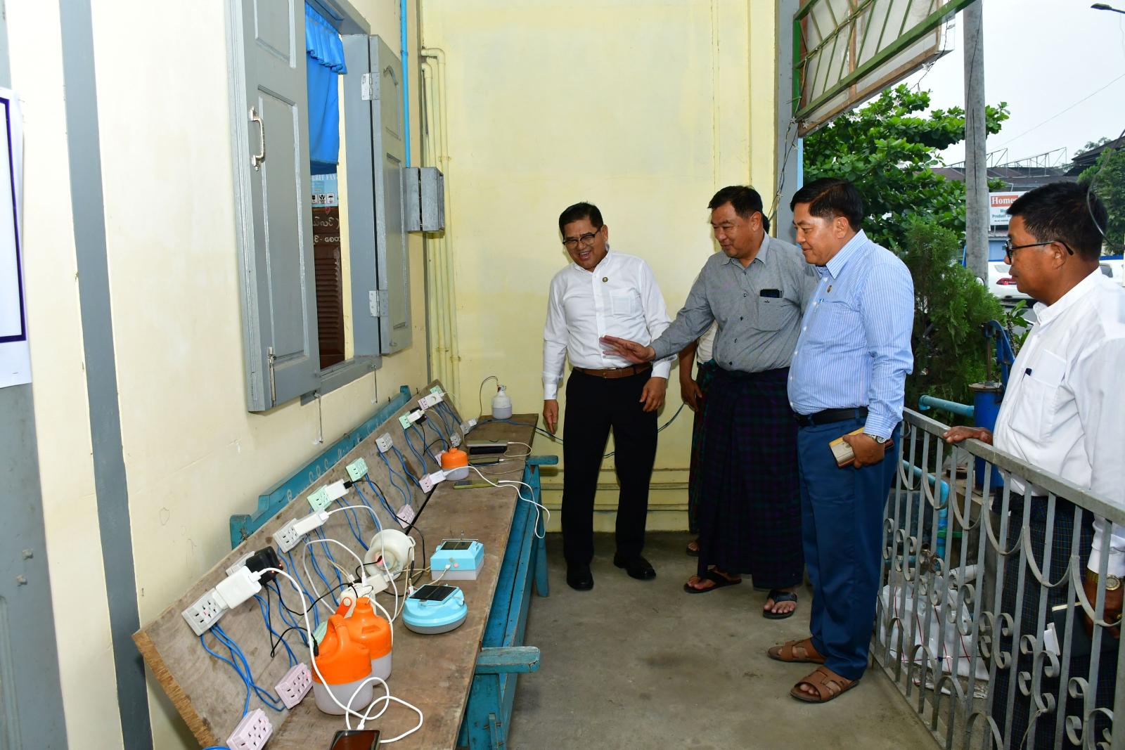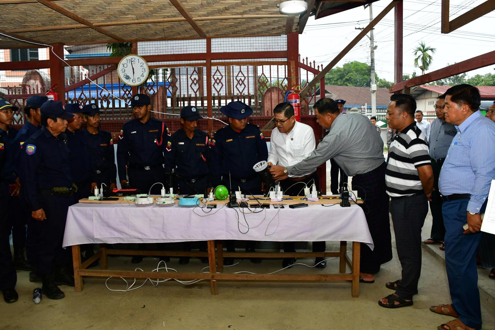 ထို့အတူ မြို့ပေါ်ရပ်ကွက်အုပ်ချုပ်ရေးမှူးရုံးများဖြစ်သည့် မြေမြင့်ရပ်ကွက်၊ ရမ်ပူရပ်ကွက်၊ အောင်နန်းရပ်ကွက်တို့သို့ သွားရောက်ပြီး အဆိုပါရပ်ကွက်အုပ်ချုပ်ရေးမှူးရုံးများအတွင်း မီးစက်များ အသုံးပြု၍ လျှပ်စစ်အားသွင်းနိုင်ရေး စီစဉ်ဆောင်ရွက်ပေးထားမှုအခြေအနေများကို ကြည့်ရှုစစ်ဆေးခဲ့ကြကာ ရပ်ကွက်အုပ်ချုပ်ရေးမှူးနှင့် အုပ်ချုပ်ရေးအဖွဲ့ဝင်များ၊ အရန်မီးသတ်တပ်ဖွဲ့ဝင်များ၊ လုံခြုံရေးအဖွဲ့များအား ရင်းရင်းနှီးနှီးတွေ့ဆုံခဲ့ကြသည်။