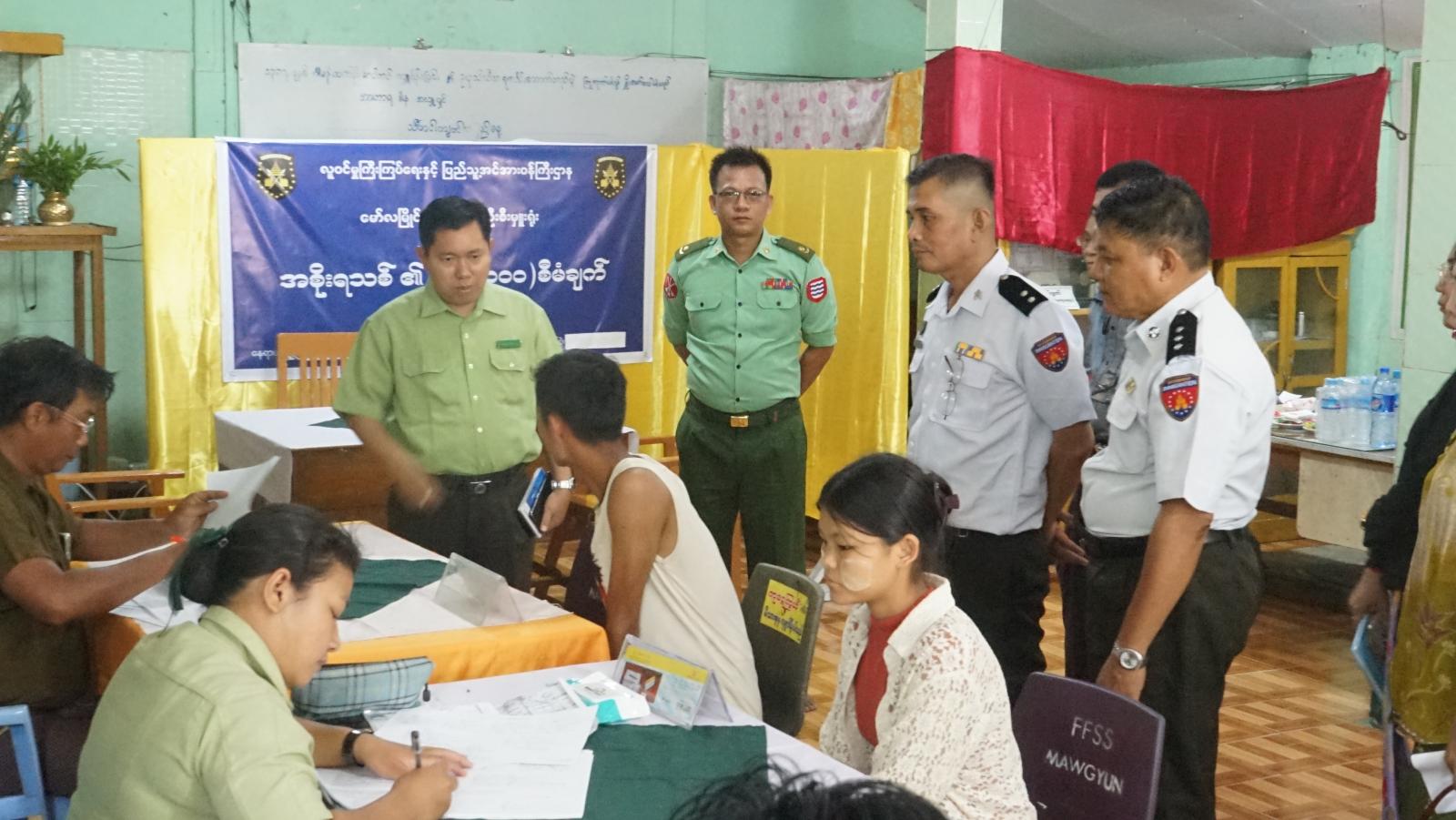 ဧရာဝတီတိုင်းဒေသကြီး၊ လပွတ္တာခရိုင်၊ မော်လမြိုင်ကျွန်းမြို့နယ်တွင် အသက် (၁၀) နှစ်ပြည့် ပြီးသည့် ကျောင်းသား၊ ကျောင်းသူများအား ရက် (၁၀၀) စီမံချက်ဖြင့် နိုင်ငံသားစိစစ်ရေးကတ်ပြား ပြုလုပ်ပေးခြင်းကို ယနေ့နံနက်(၉)နာရီအချိန်က မော်လမြိုင်ကျွန်းမြို့နယ်၊ အမှတ် (၁၁) ရပ်ကွက်၊ အုပ်ချုပ်ရေးမှူးရုံး၌ ကွင်းဆင်းဆောင်ရွက်ပေးခဲ့သည်။