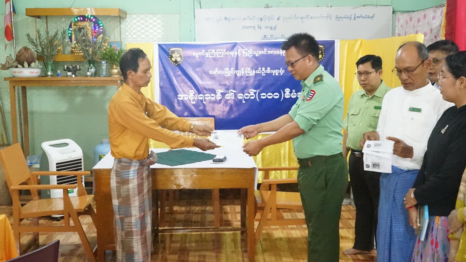 အဆိုပါ ရက် (၁၀၀) စီမံချက်ဖြင့် ကွင်းဆင်းဆောင်ရွက်ရာတွင် မြို့နယ်လူဝင်မှုကြီးကြပ်ရေးနှင့် ပြည်သူ့အင်အားဦးစီးဌာန မြို့နယ်ဦးစီးအရာရှိ ကြီးကြပ်မှုဖြင့် တိုက်နယ်မှူးနှင့်ဝန်ထမ်းများ၊ ကျေးရွာအုပ်ချုပ်ရေးမှူးများနှင့် ရပ်/ကျေးစာရေးများက မြေပြင်အရောက် ကွင်းဆင်း၍ အသက် (၁၀) နှစ်ပြည့်၊ (၁၈) နှစ်ပြည့် နိုင်ငံသားစိစစ်ရေးကတ်ပြား အသစ်ပြုလုပ်လိုသည့် ကျောင်းသား၊ ကျောင်းသူများအား လိုအပ်သည့်အချက်အလက်၊ အထောက်အထားများဖြည့်စွက်ကာ စိစစ်ထုတ်ပေးပြီး ဇီဝဆိုင်ရာအချက်အလက်ကောက်ယူခြင်းလုပ်ငန်းများကို လုပ်ထုံးလုပ်နည်း များနှင့်အညီ ကွင်းဆင်းဆောင်ရွက်ပေးခဲ့သည်။ ထို့သို့ဆောင်ရွက်နေမှုများကို မြို့နယ်စီမံခန့်ခွဲရေးနှင့် အုပ်ချုပ်ကော်မတီဥက္ကဋ္ဌ ဦးခင်မောင်ဦးနှင့်အဖွဲ့ဝင်များ၊ မြို့နယ်လူဝင်မှုကြီးကြပ်ရေးနှင့်ပြည်သူ့အင်အားဦးစီးဌာန မြို့နယ်ဦးစီးအရာရှိ ဦးရဲကျော်တို့က သွားရောက်ကြည့်ရှုအားပေးခဲ့ပြီး ပြည်သူများထံ ကတ်ပြားများကို လက်ဝယ်အရောက် ပေးအပ်ခဲ့သည်။ ထို့နောက်လိုအပ်သည်များ ဖြည့်စွက်မှာကြားခဲ့ပြီး၊ လုပ်ငန်းလိုအပ်ချက်များကို ပေါင်းစပ်ညှိနှိုင်းဆောင်ရွက်ပေးခဲ့ကြောင်း သိရှိရသည်။